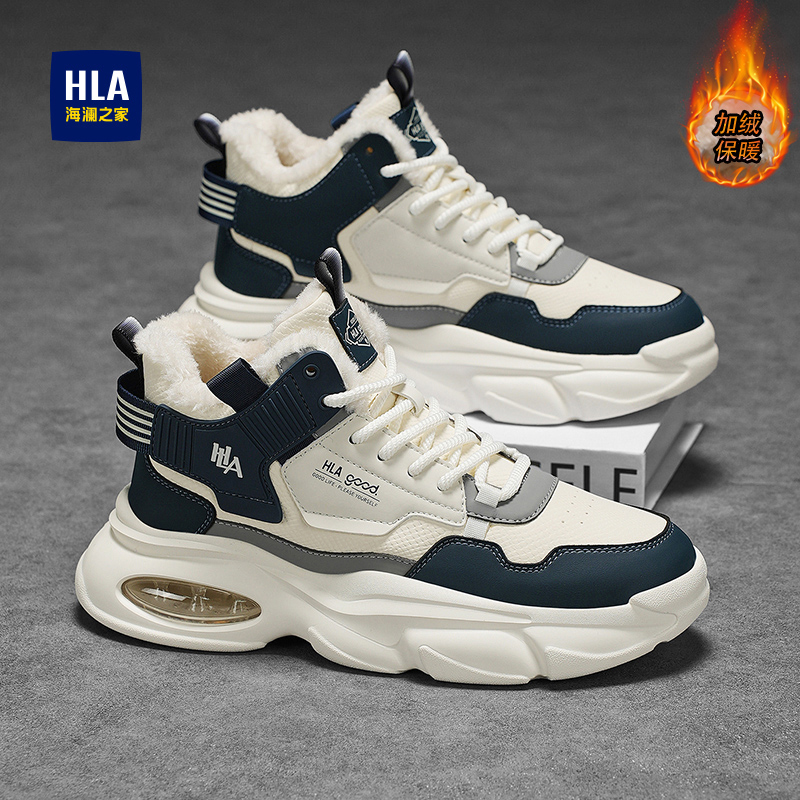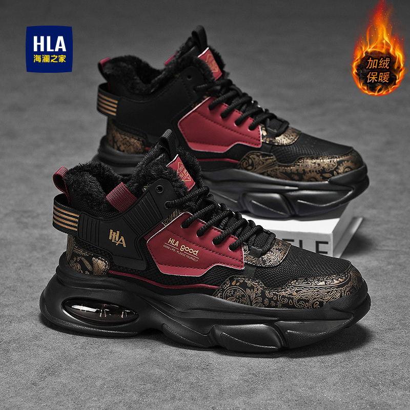 海澜之家男鞋2025冬季气垫加绒新款运动鞋青少年休闲跑步老爹潮鞋