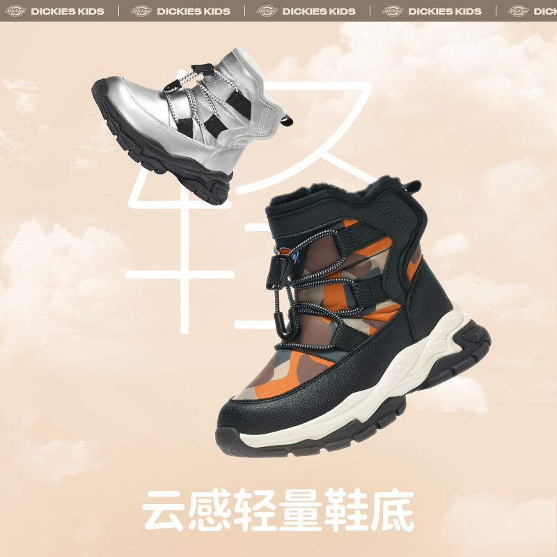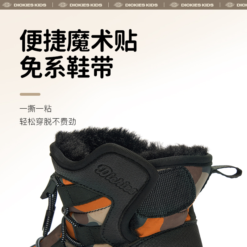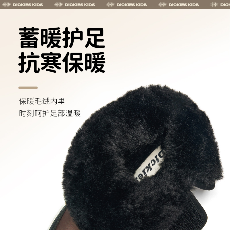 Dickies童鞋儿童雪地靴冬季加绒加厚保暖男女童大棉靴防滑冰爪鞋