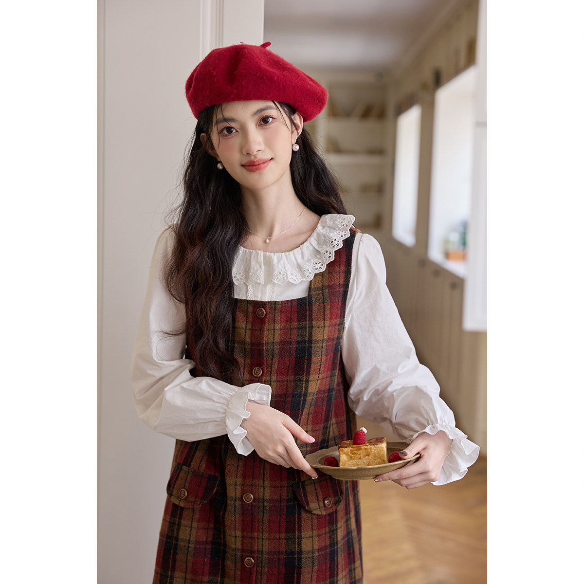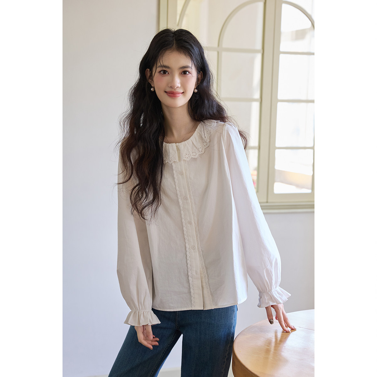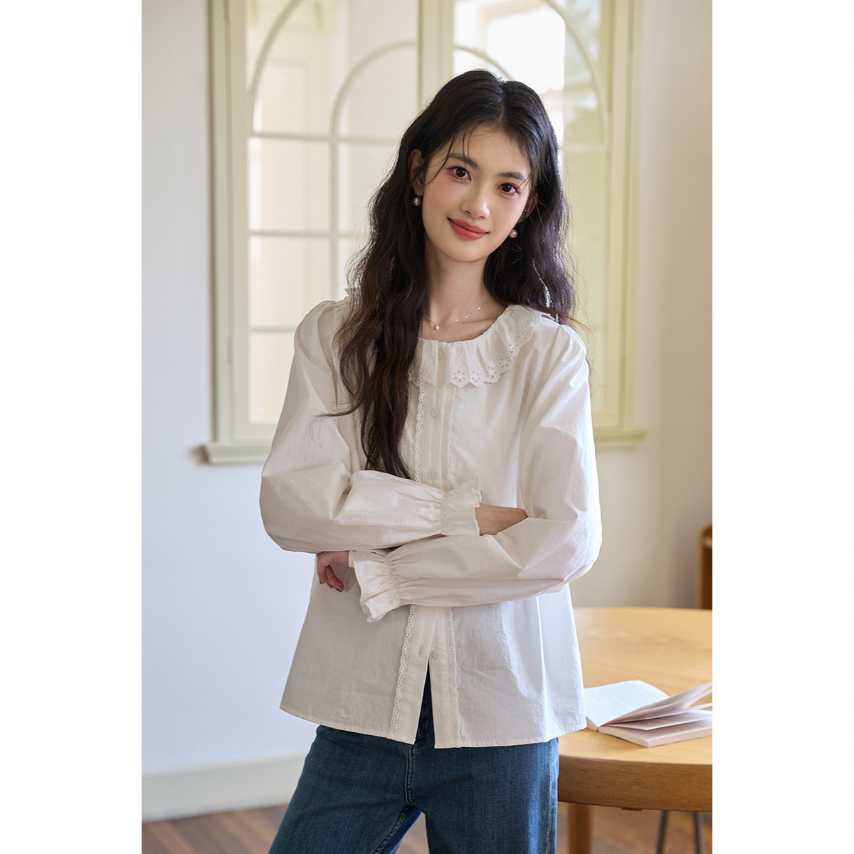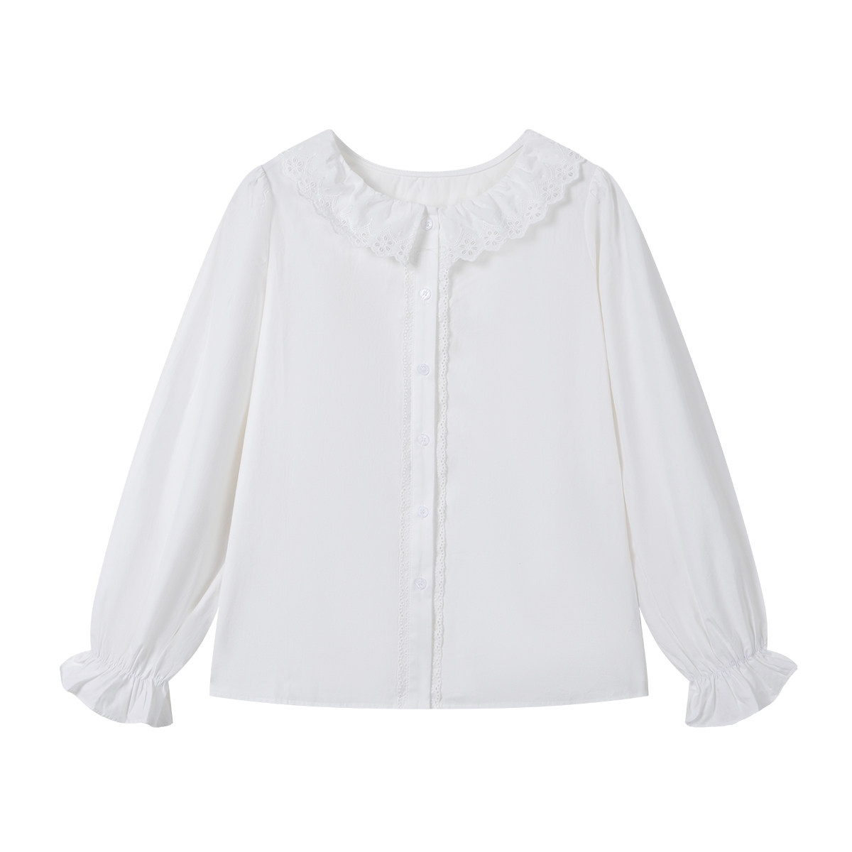 弥古法式娃娃领白色衬衫女2025新款秋冬内搭长袖打底纯棉衬衣上衣
