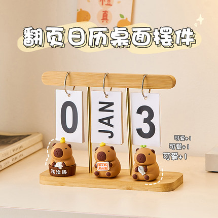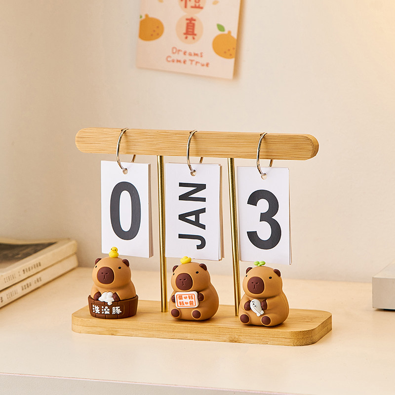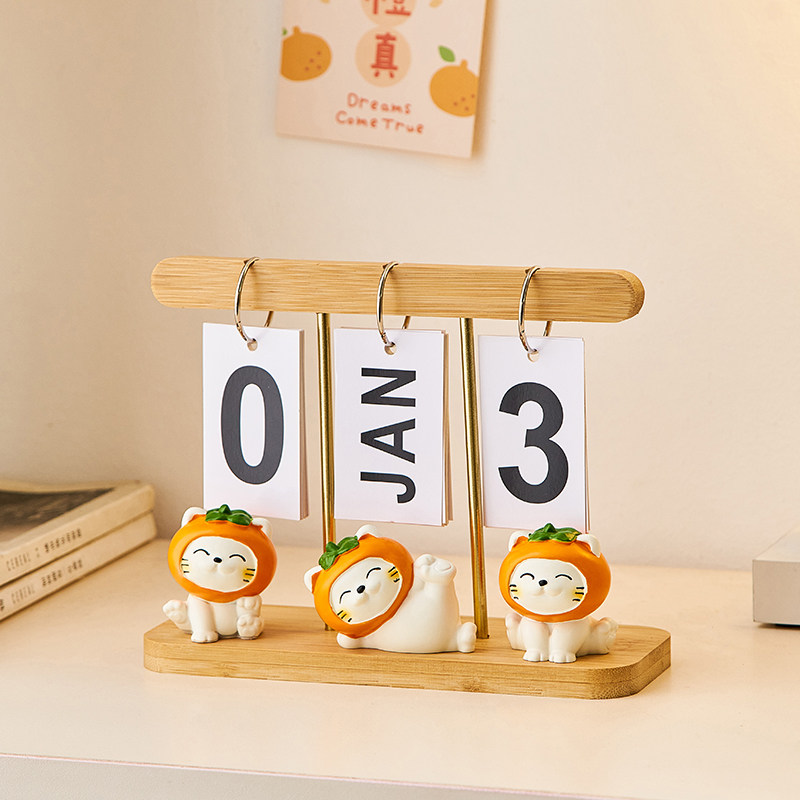 现代简约木质日历翻页礼品装饰摆件桌面台历万年历拍照道具装饰品