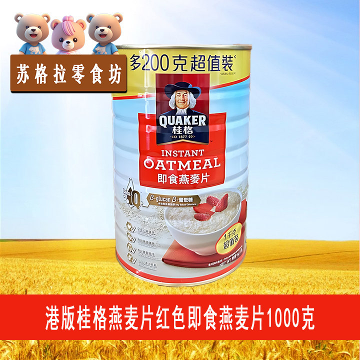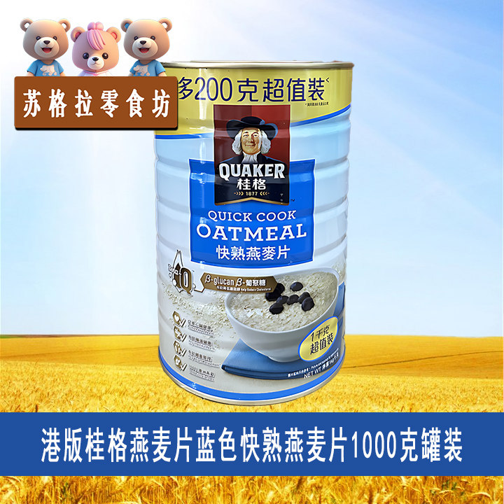 进口港版 QUAKER桂格燕麦片澳洲天然麦片即食快熟1000克罐装