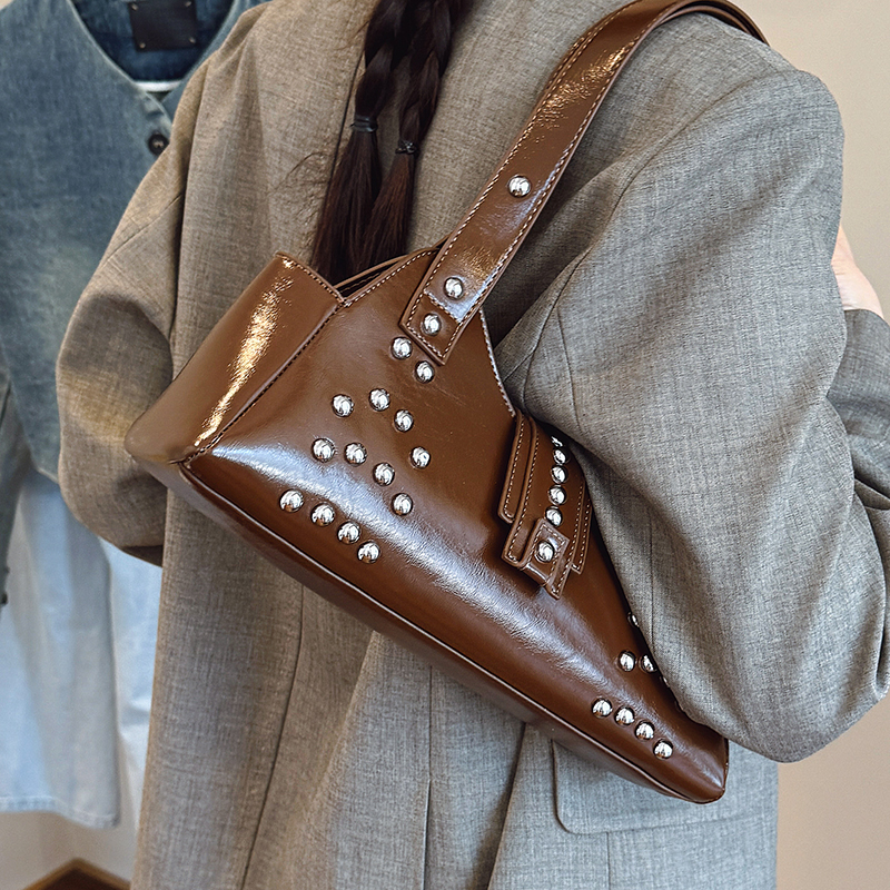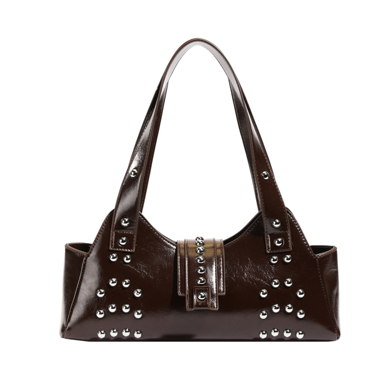 今年流行美拉德腋下包女式2025新款小众设计复古铆钉单肩包通勤包