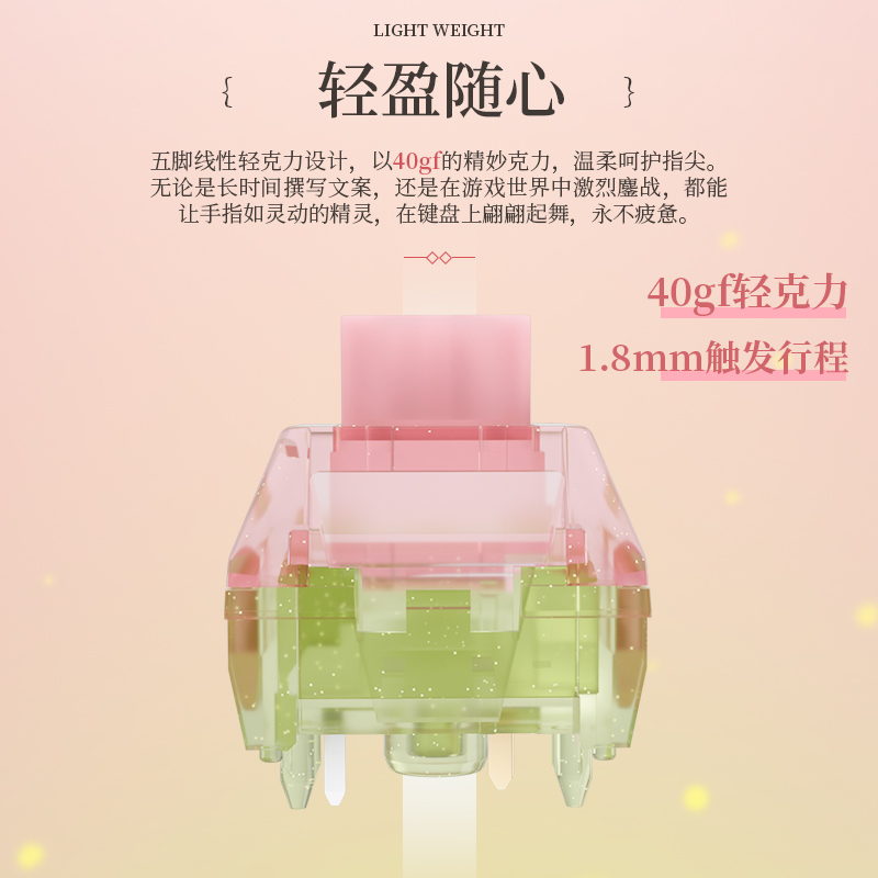 凯华kailh机械键盘轴BOX桃茉轴线性夜光荧光闪粉粉绿轻克力春天40