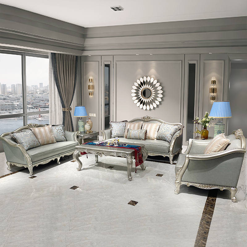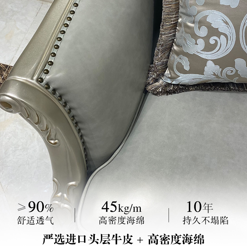 美式轻奢真皮沙发欧式头层牛皮小户型客厅组合实木法式家具三人位