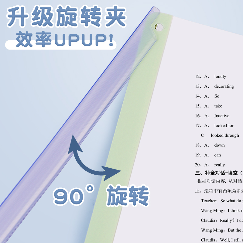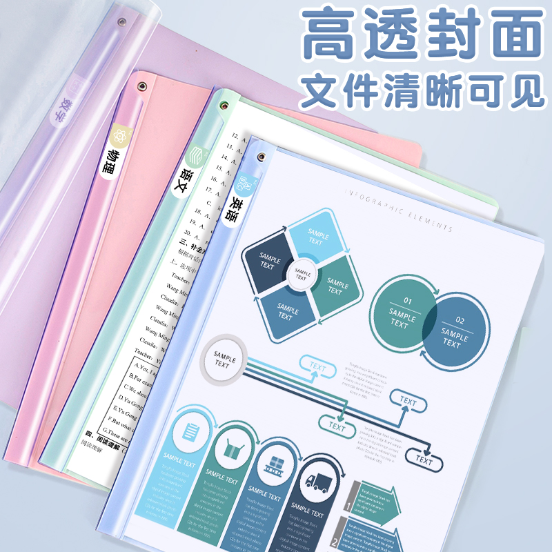 旋转拉杆夹文件夹A4试卷夹渐变色文具文件袋保护套透明插页整理夹合同收纳夹加厚抽杆夹办公资料小学生专用