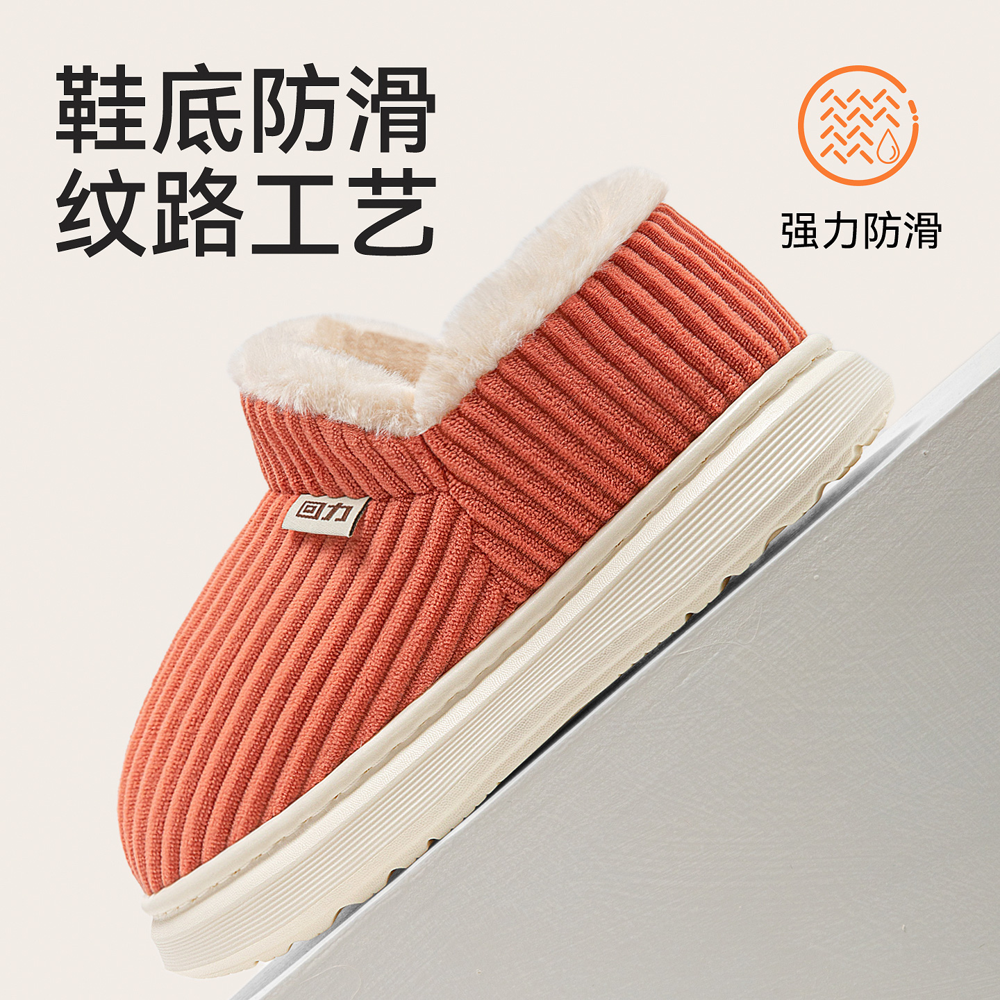 回力棉拖鞋女士冬季包跟2025新款加绒防滑厚底外穿保暖毛绒棉鞋男