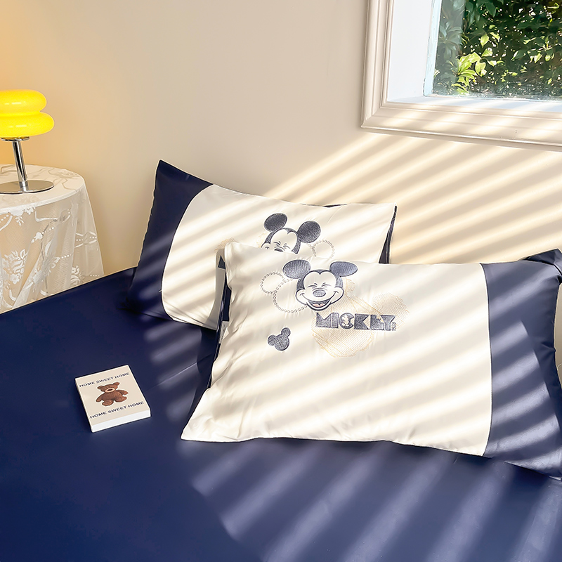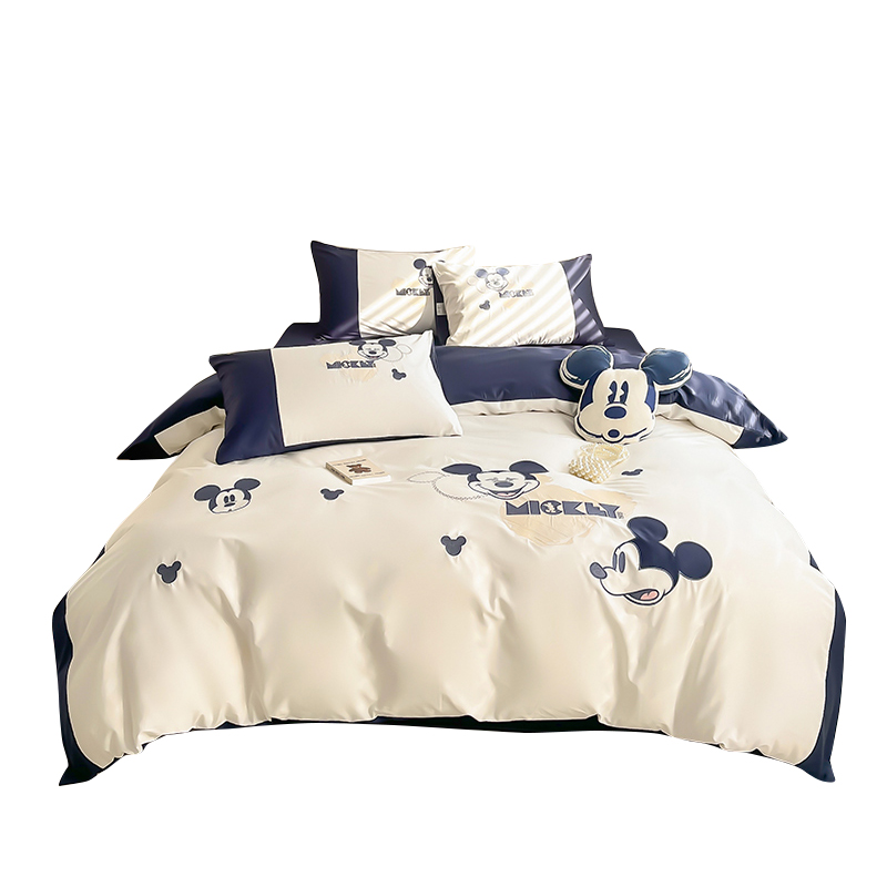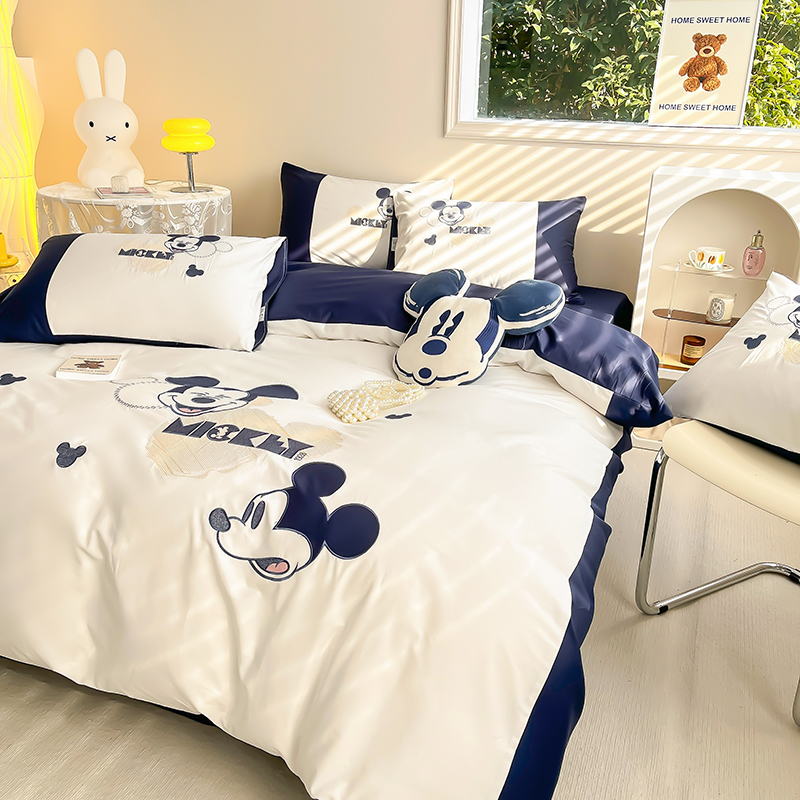 迪士尼卡通米奇刺绣全棉四件套学生儿童绣花草莓熊纯棉三件套春夏