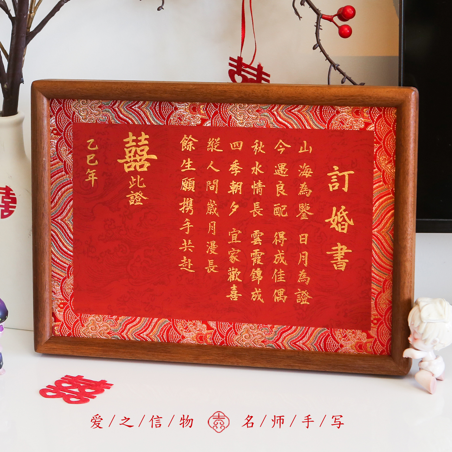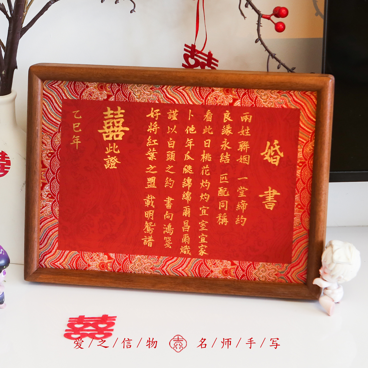 鹤栖涧a4纯手写婚书订婚书画框相框式新中式高级结婚书法摆台定制