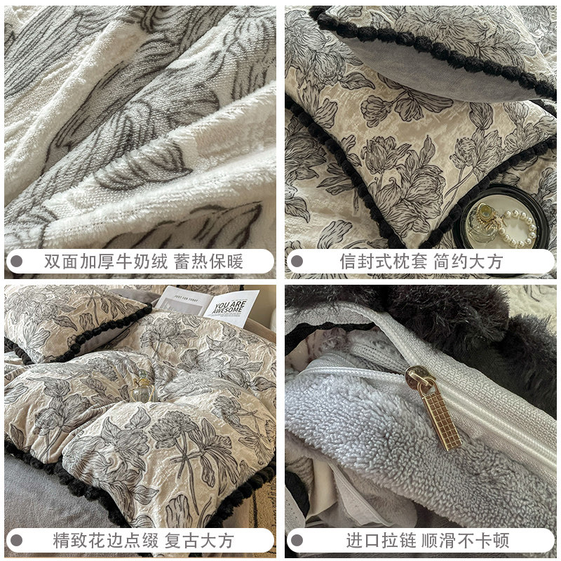 法式A类轻奢雕花牛奶绒四件套冬季双面加绒被套珊瑚绒床单三件套4