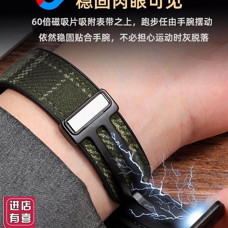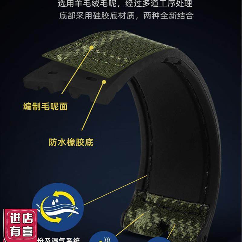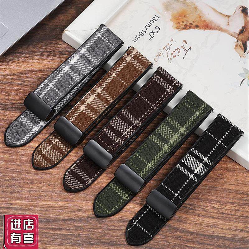 适配FOSSIL化石格纹毛呢表带男ME309G9S棕色复古磁吸硅胶表带22mm