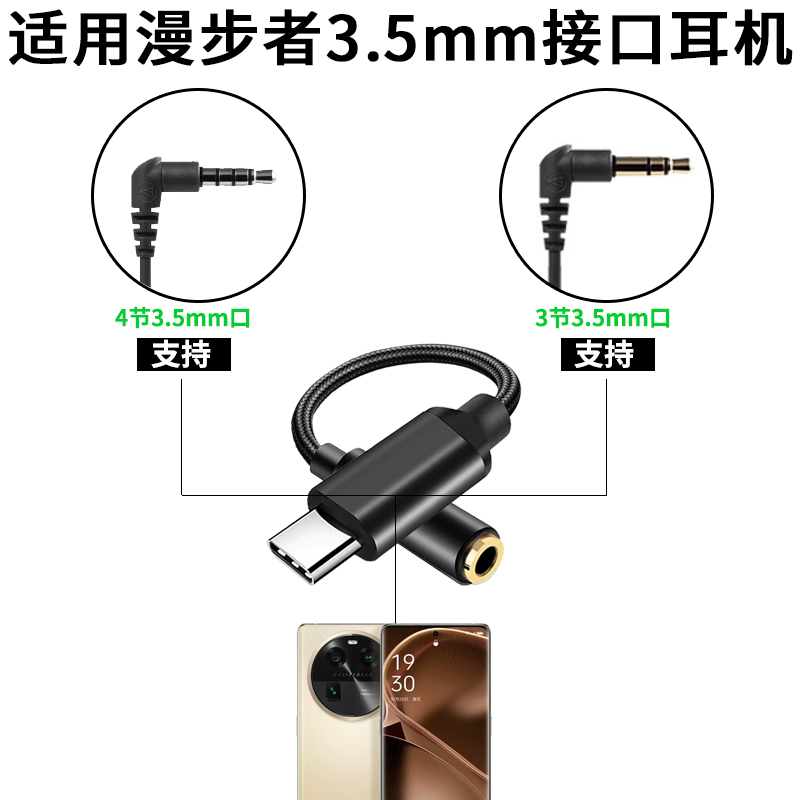 适用漫步者耳机连手机3.5转接线