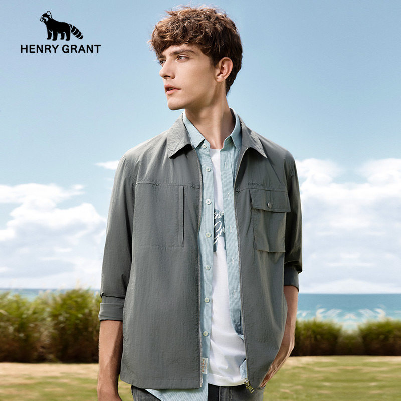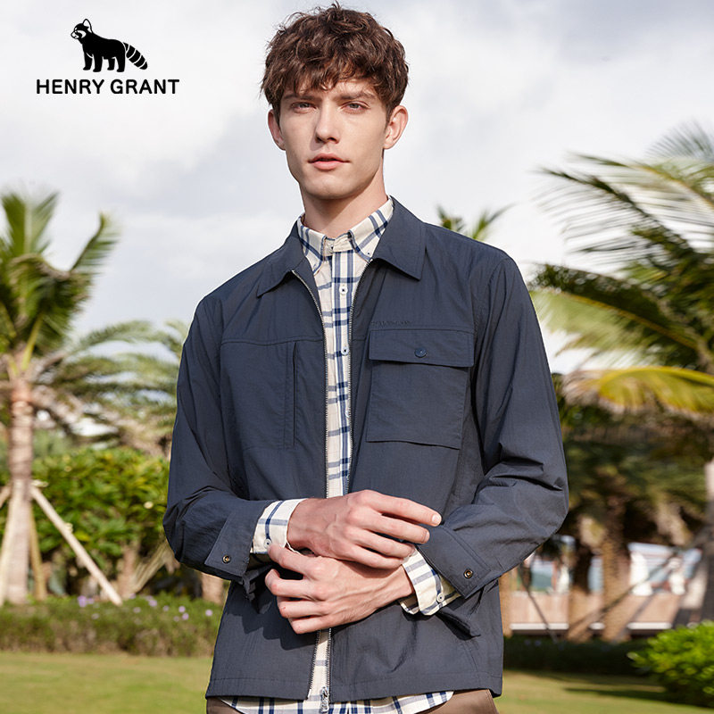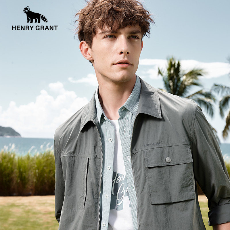亨利格兰男士翻领行政夹克衫2026春季商务薄款肌理感工装长袖外套
