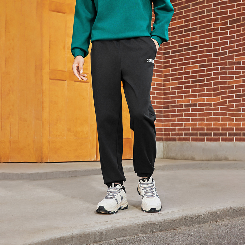 斯凯奇冬季加绒运动长裤女情侣卫裤宽松黑色显瘦户外束脚裤子男款