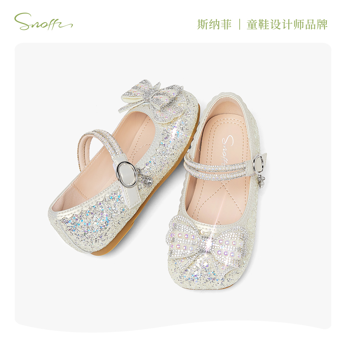 【商场同款】斯纳菲女童皮鞋儿童水晶鞋2025春秋新款闪亮小公主鞋