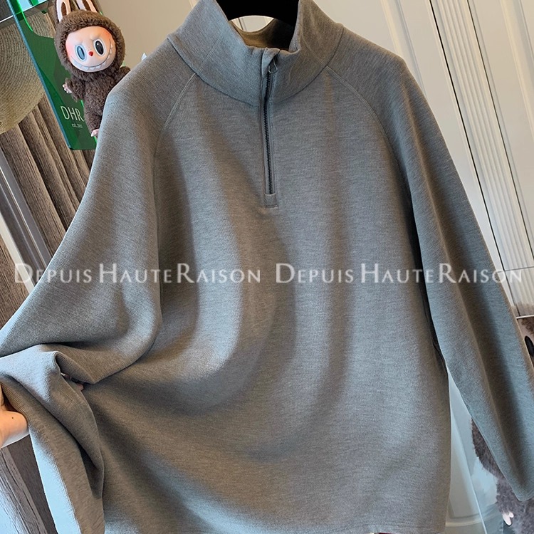 DHR 美式半拉链半高领长袖T恤打底衫卫衣宽松内搭上衣女秋冬新款