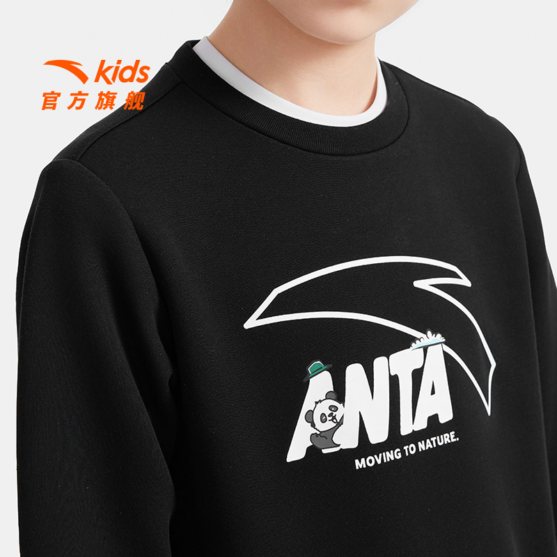安踏儿童卫衣男童套头衫2025年春秋新款大童百搭运动衫女孩打底衫