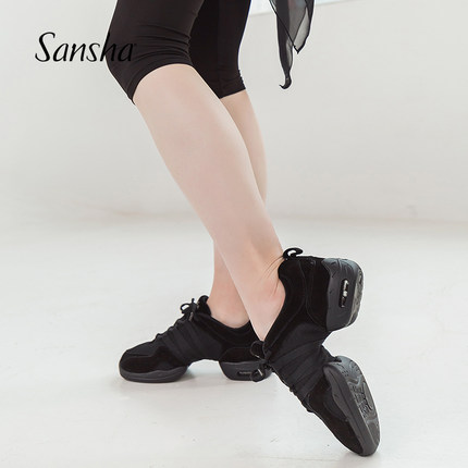 Sansha 法国三沙拼接现代舞鞋牛皮气垫网面运动舞蹈鞋 女广场舞鞋