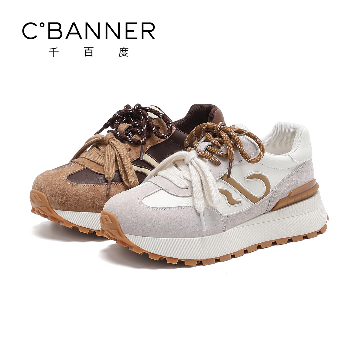 商场同款千百度厚底德训鞋女春季2026新款运动阿甘休闲鞋RC654038