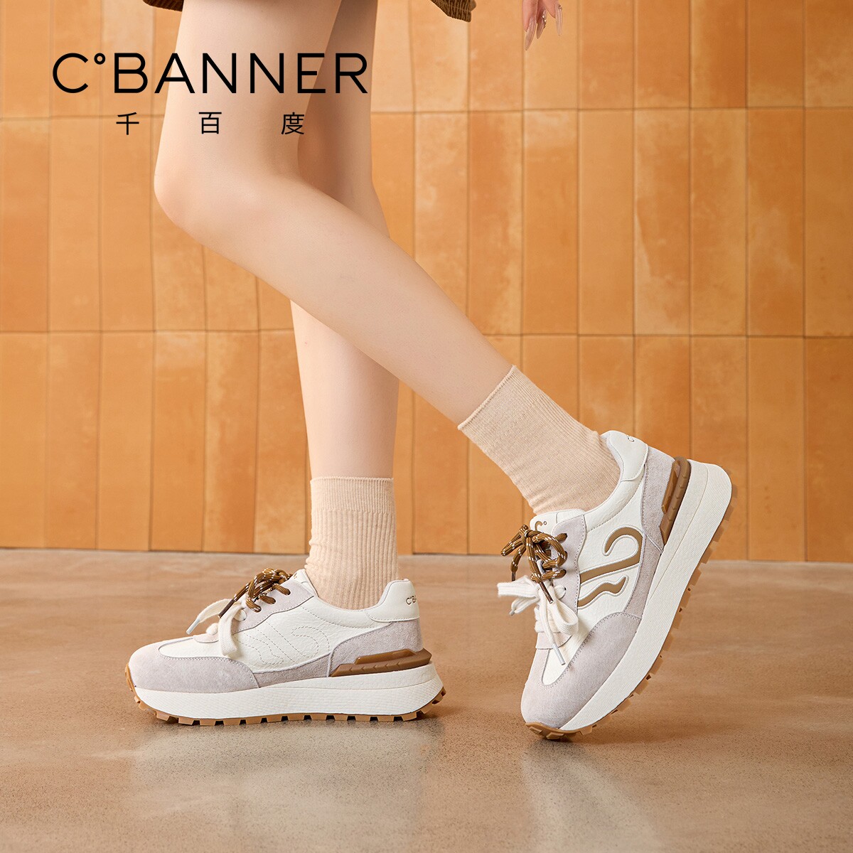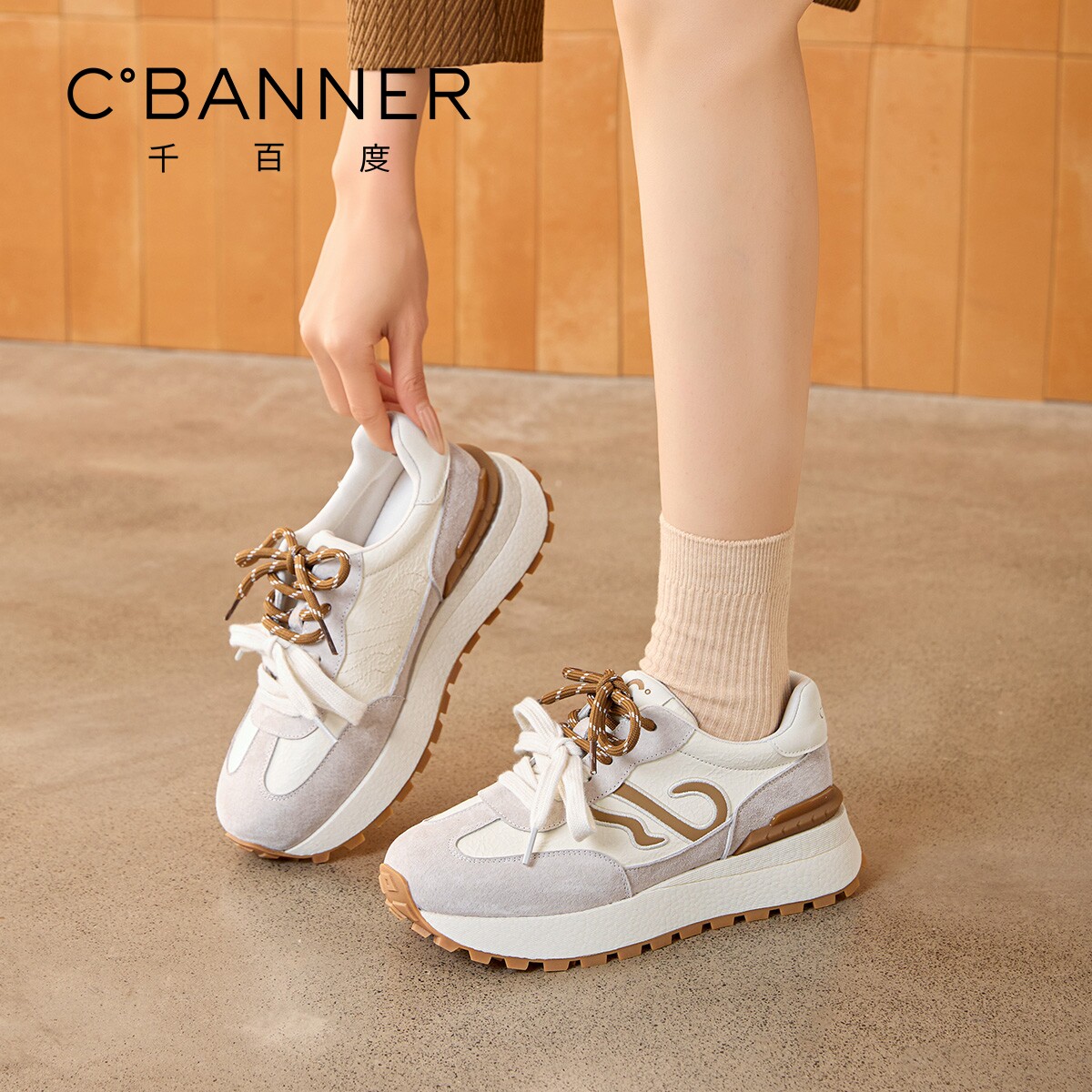 千百度厚底德训鞋女春季新款