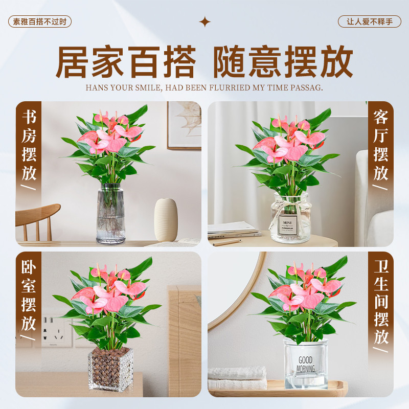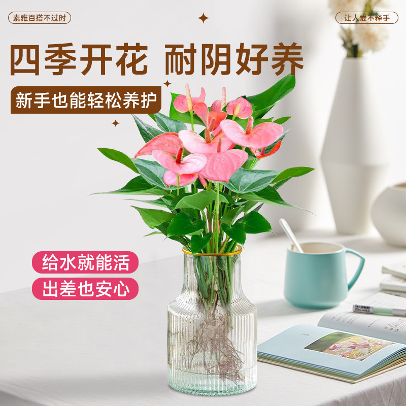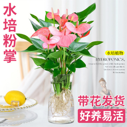 粉掌盆栽水培植物室内好养绿植水养花卉四季常青红掌鲜花一帆风顺