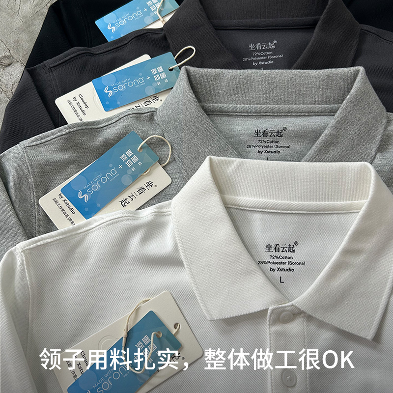 索罗娜珠地POLO衫翻领长袖T恤sorona男质感纯色简约商务休闲打底