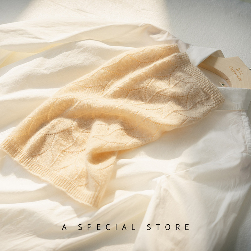 秋冬枫叶镂空纯山羊绒围巾脖套