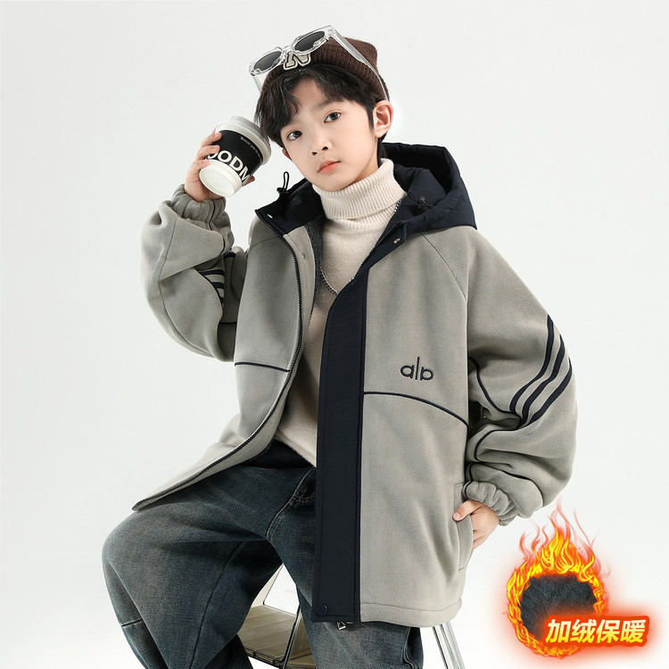 男童冬装加绒奥粒绒外套新款派克服中大童秋冬款男孩冬季加厚棉衣
