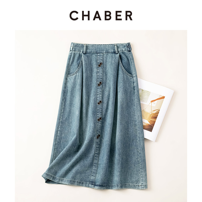 chaber巧帛夏季新款高腰显瘦牛仔半身裙时尚气质百搭女式半裙