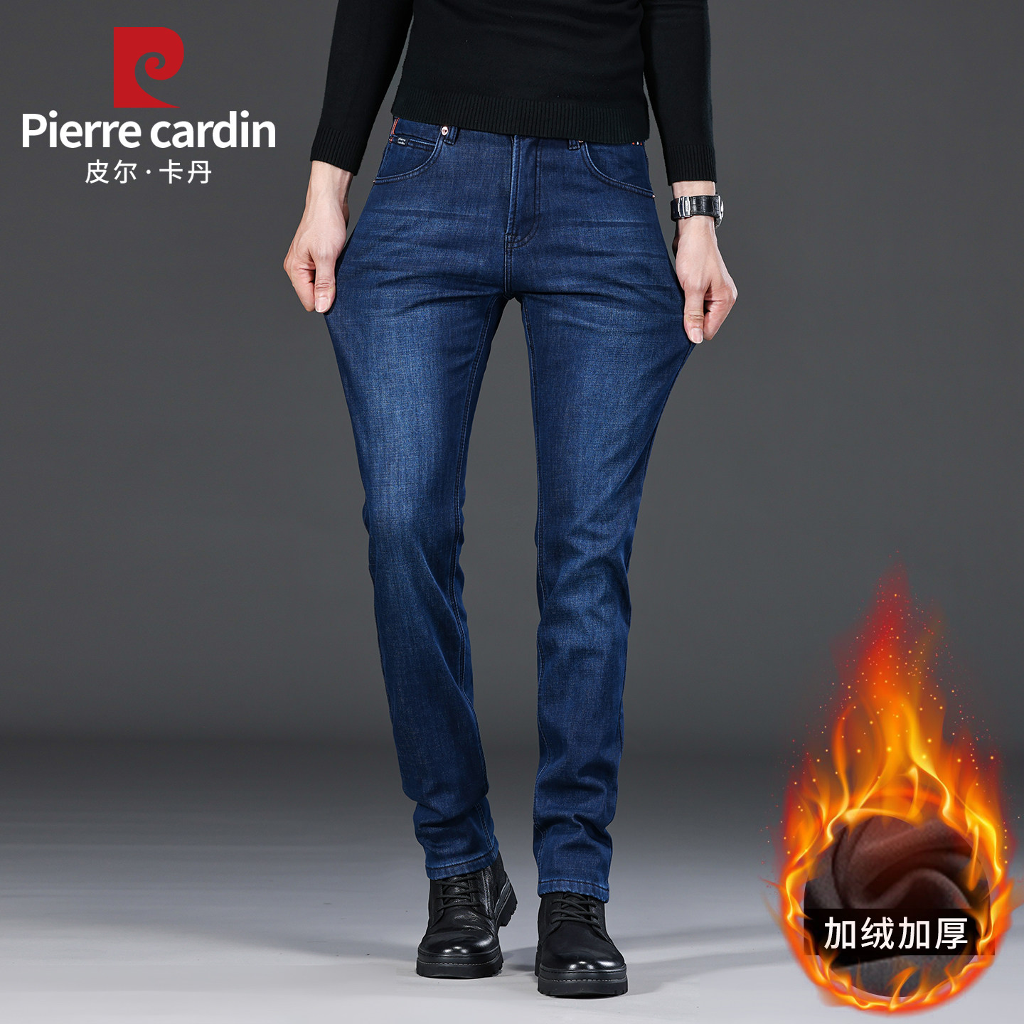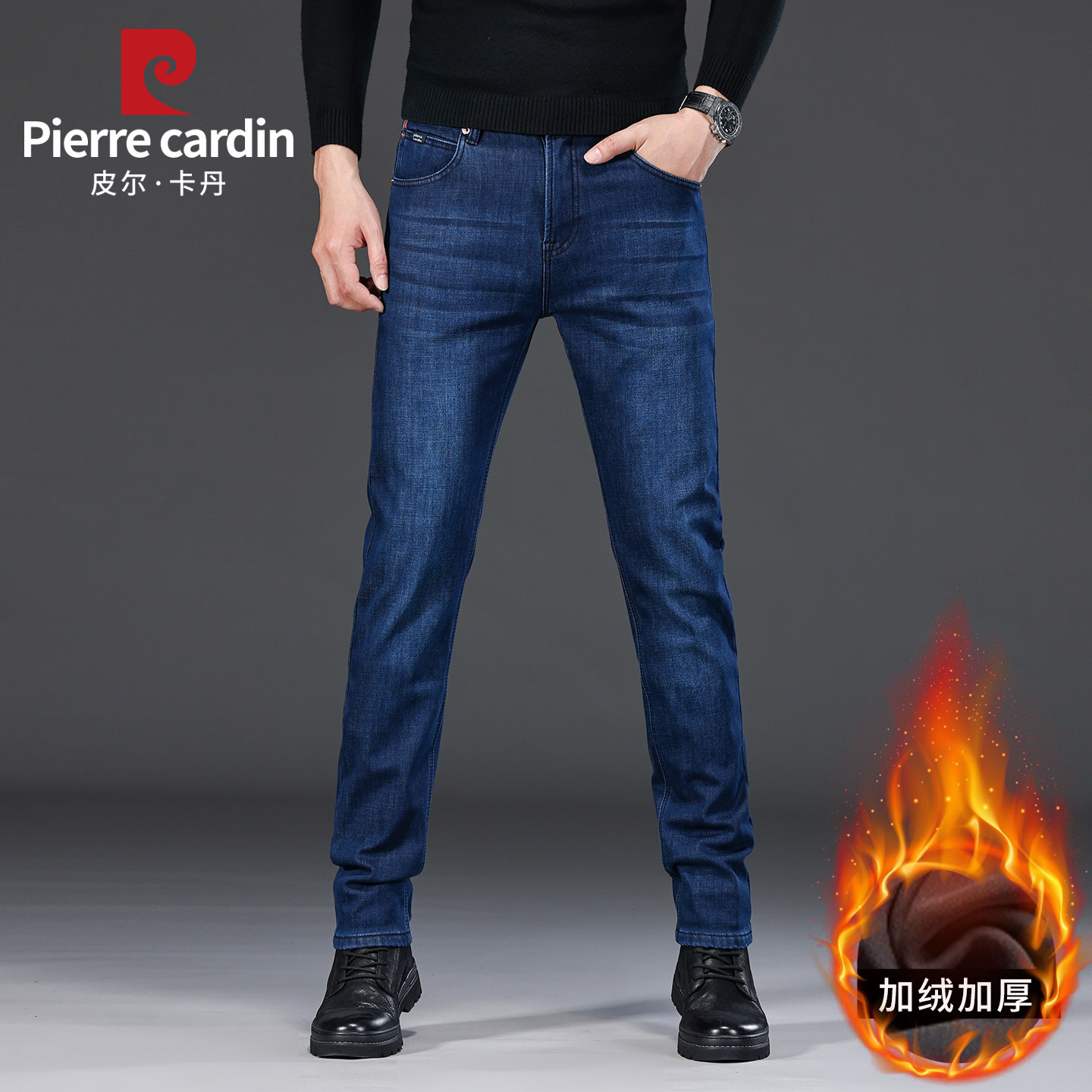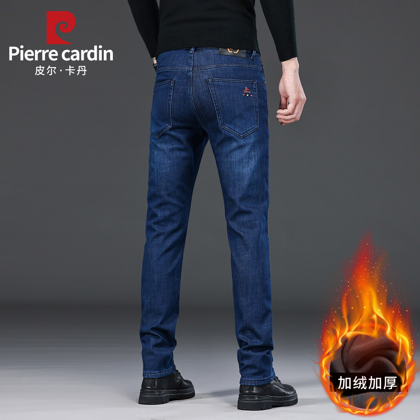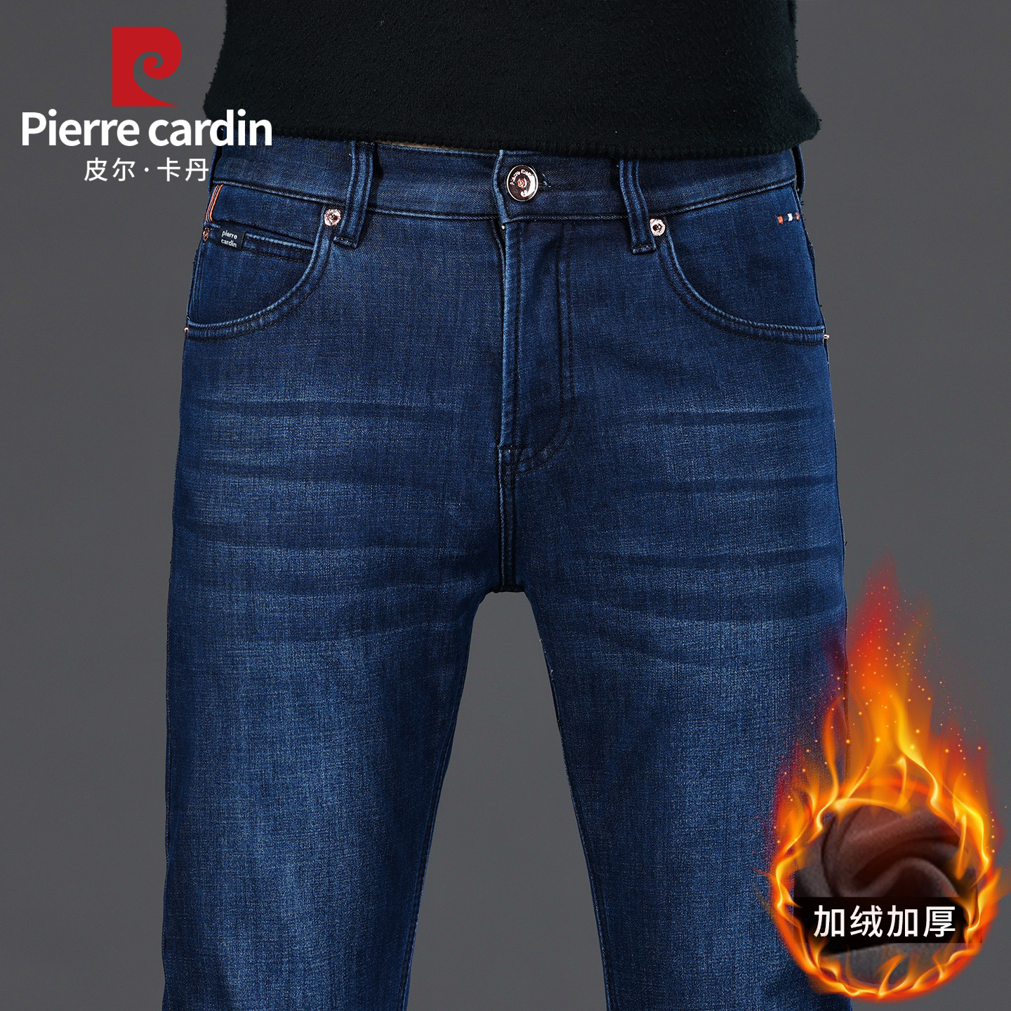皮尔卡丹男士加绒保暖牛仔裤