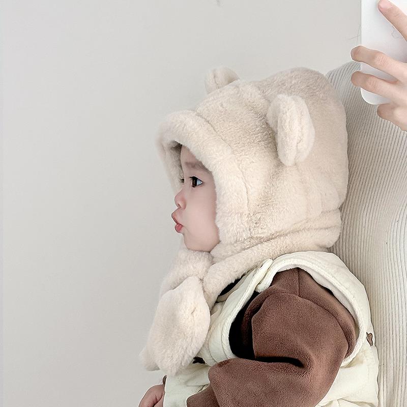 2025新款儿童帽围巾一体帽子围脖两件套厚秋冬季男童女童加保暖宝