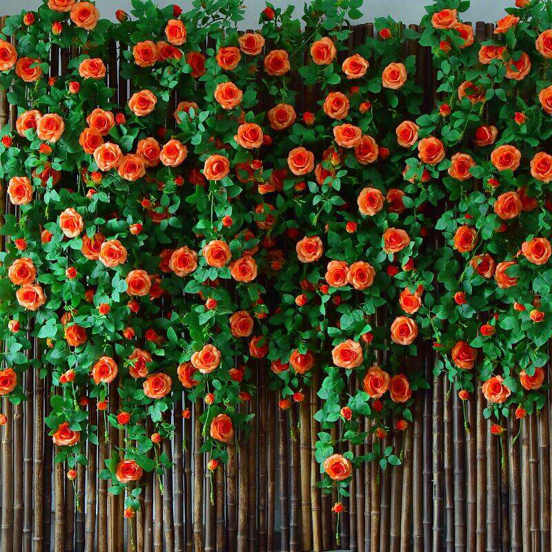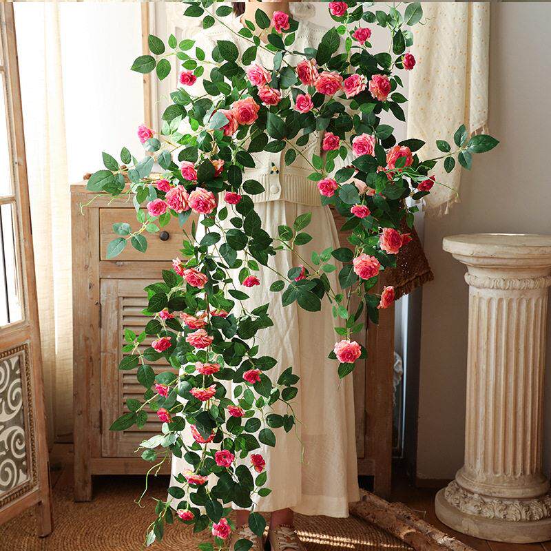 彷真玫瑰花藤网红花墙店门头假花造景装饰拍照道具花束管道悬吊式