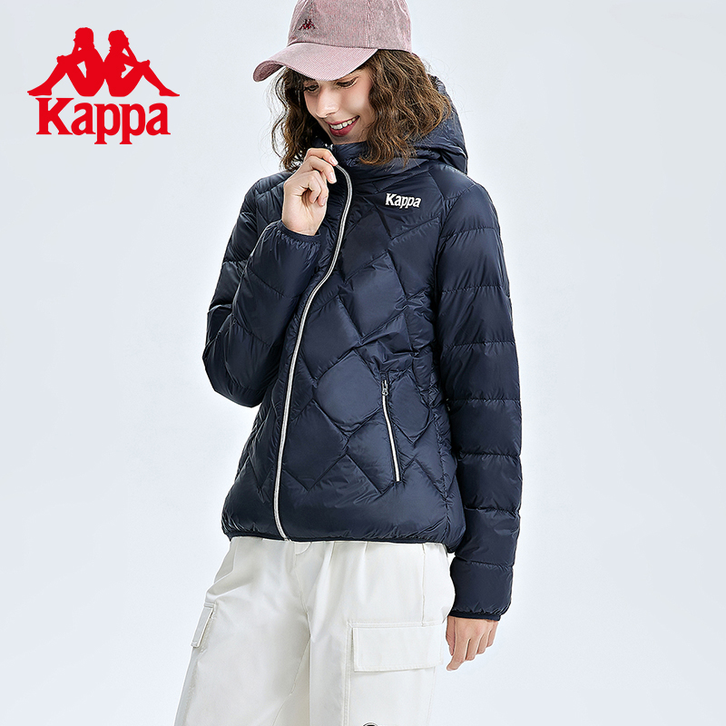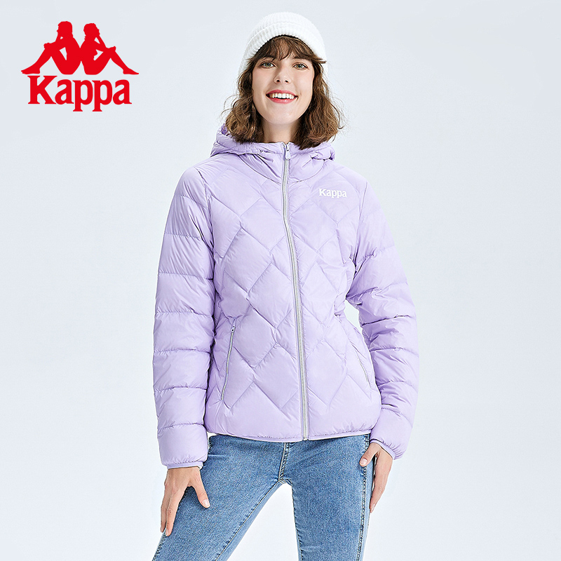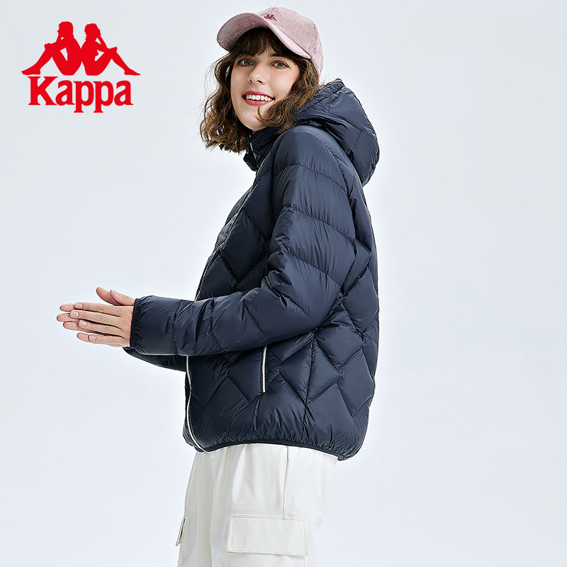 Kappa卡帕背靠背羽绒服女冬绗缝连帽羽绒服户外面包防寒服外套