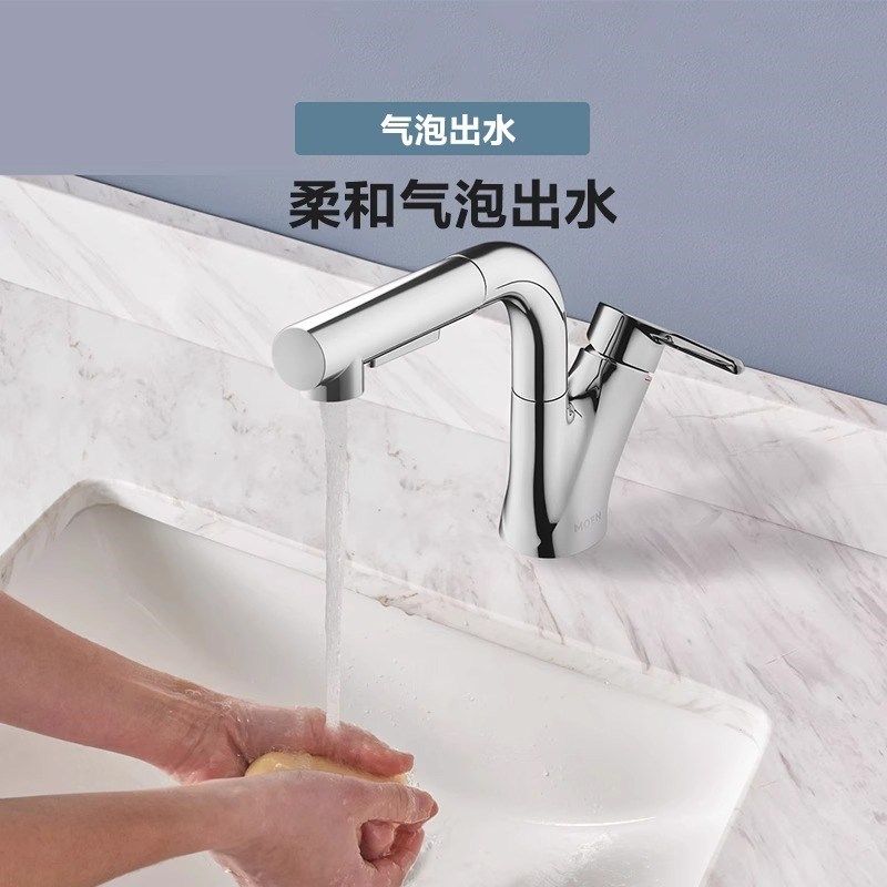 摩恩抽拉式面盆龙头可升降冷热家用洗脸盆洗手盆漱口水龙头89124M