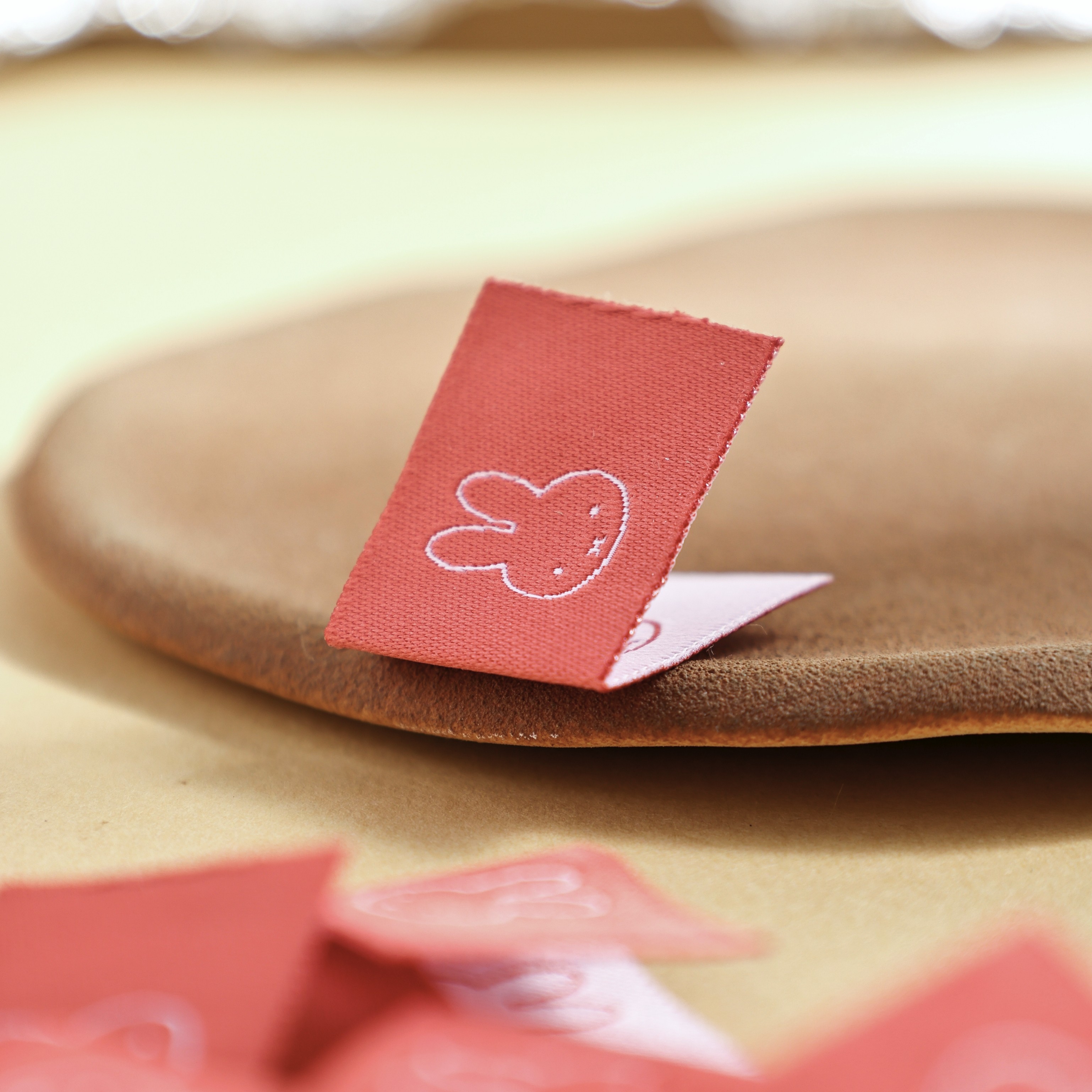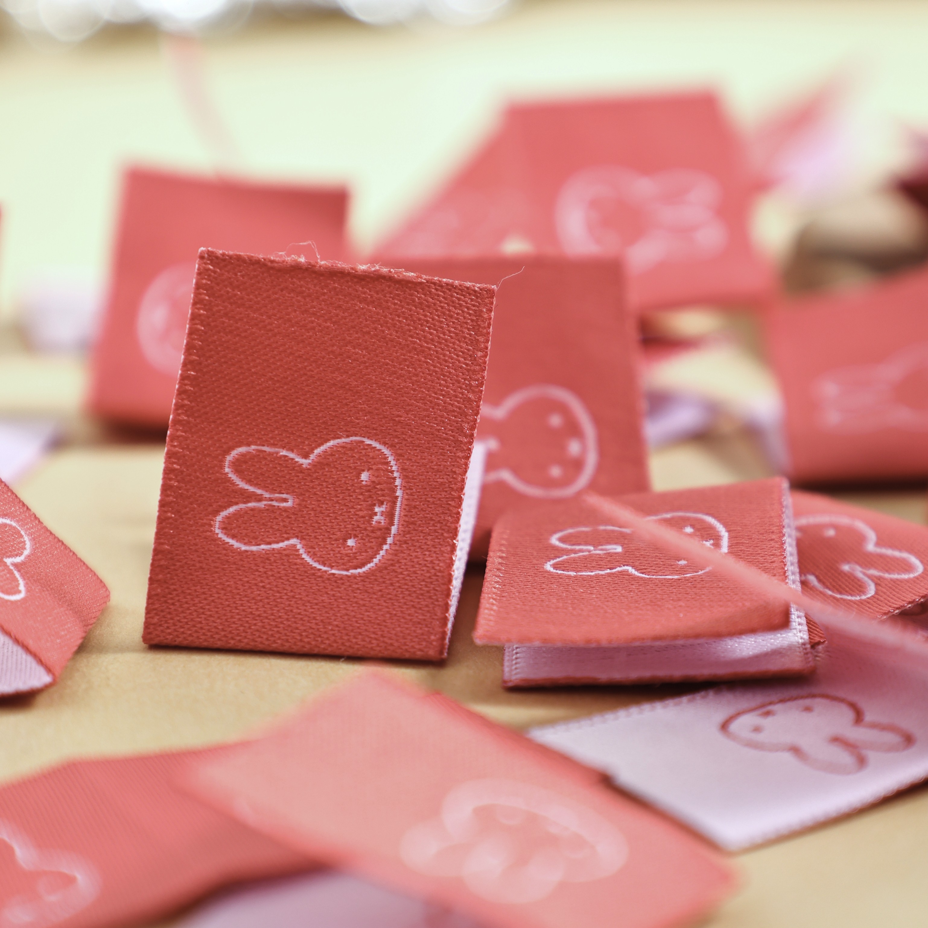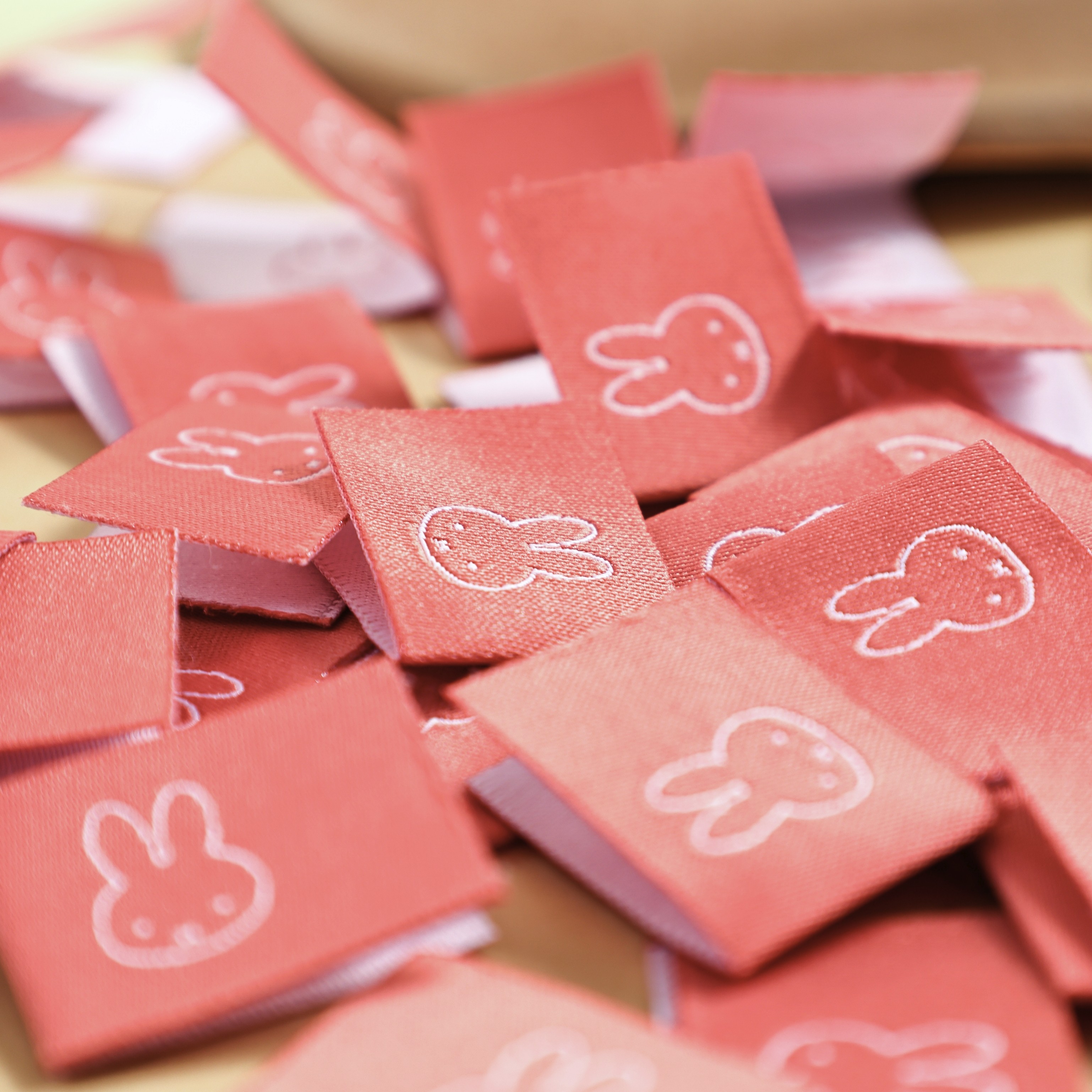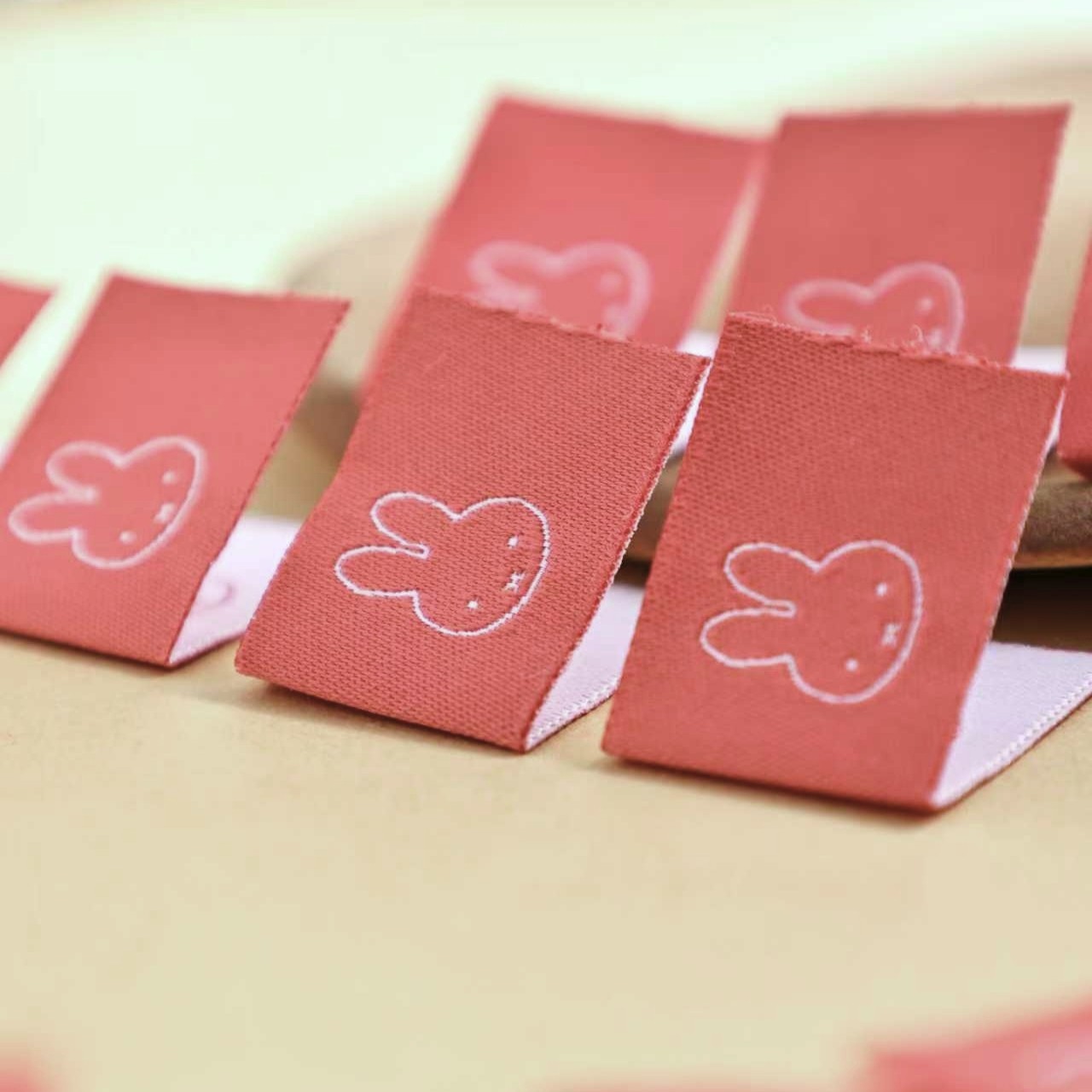 玫瑰粉米菲兔对折布标织唛领标洗标服装辅料织标商标大肠圈辅料