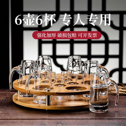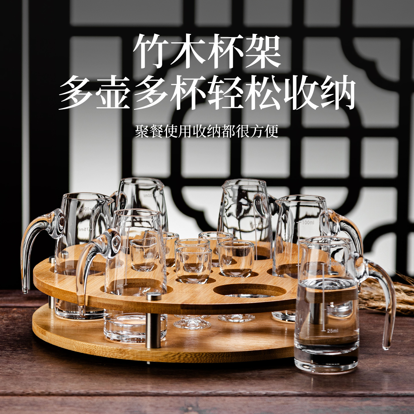 中式水晶白酒杯套装家用小号一口杯分酒器带刻度酒盅酒具烈酒杯子