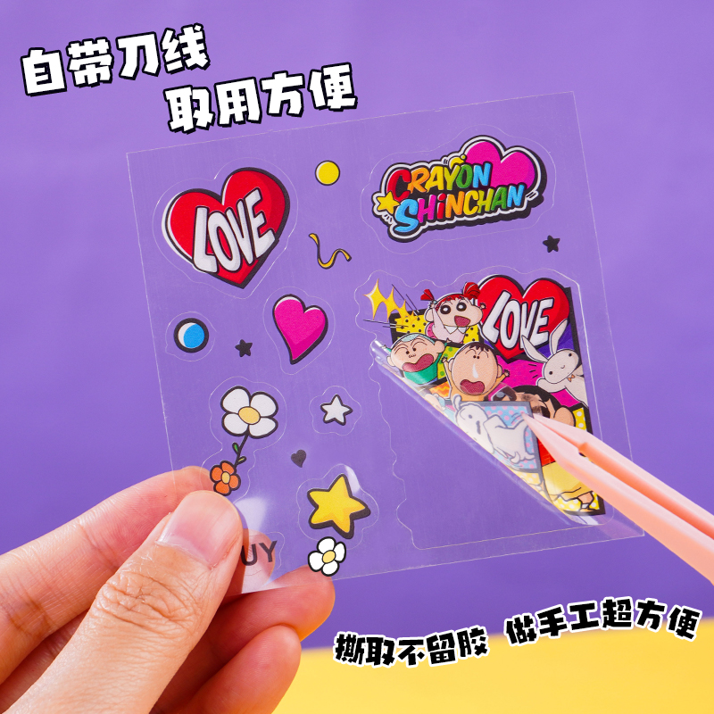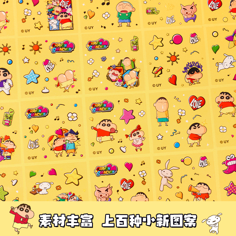 正版蜡笔小新六宫格贴纸礼盒手帐咕卡套装可爱女孩玩具礼物diy手工装饰贴贴画素材儿童卡通小图案水杯贴全套