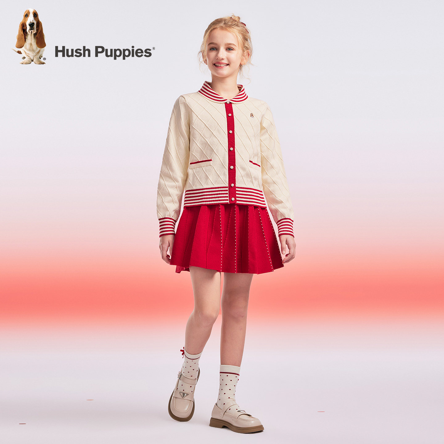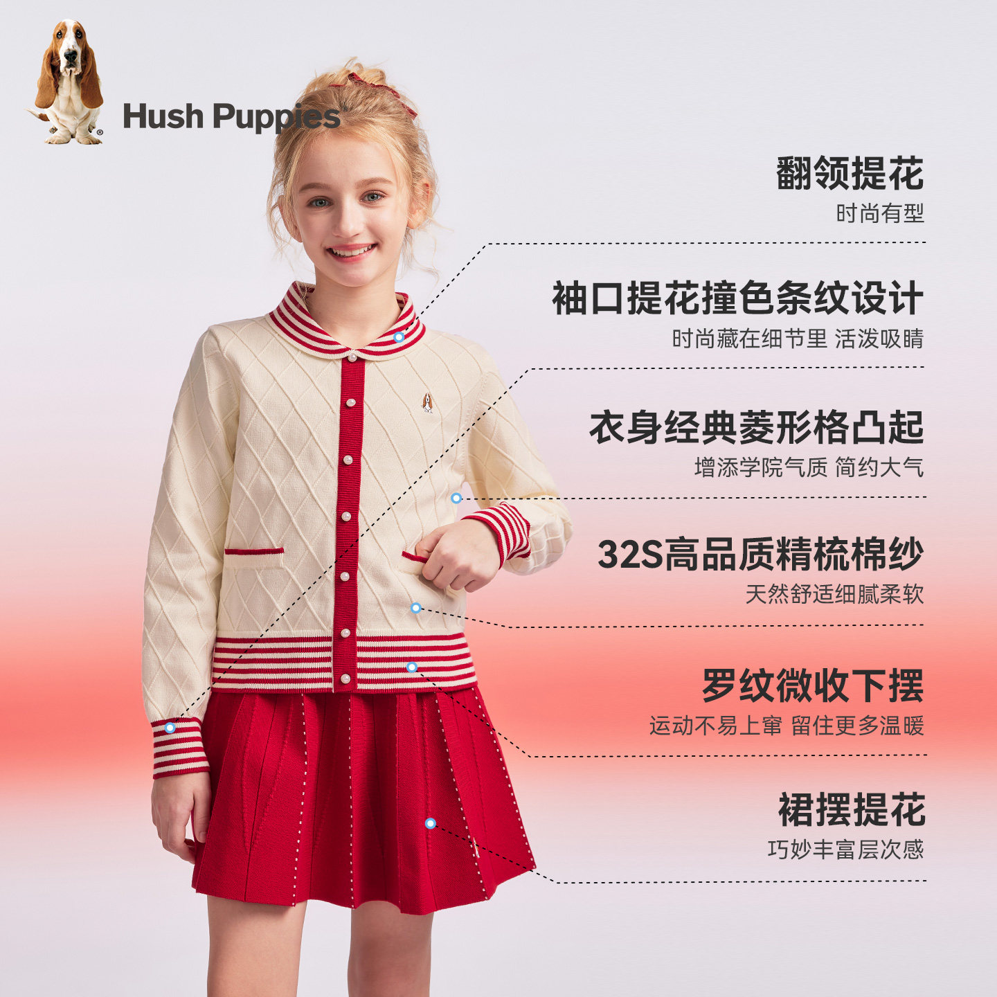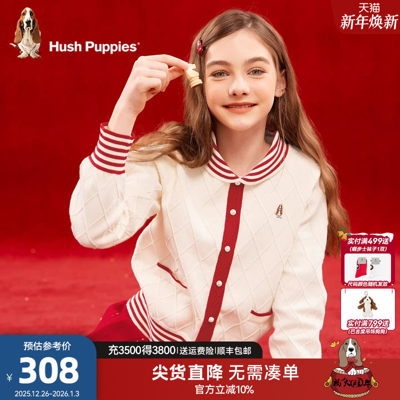 暇步士童装女童套装25秋冬新品女大童毛衣裙儿童新年装两件套套装