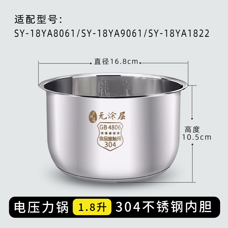 适用苏泊尔1.8L小绿锅电压力锅内胆SY-18YA8061内胆18YA9061锅芯