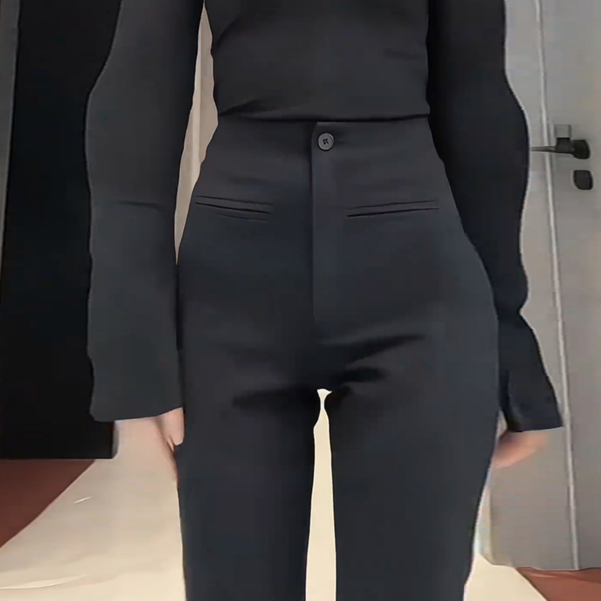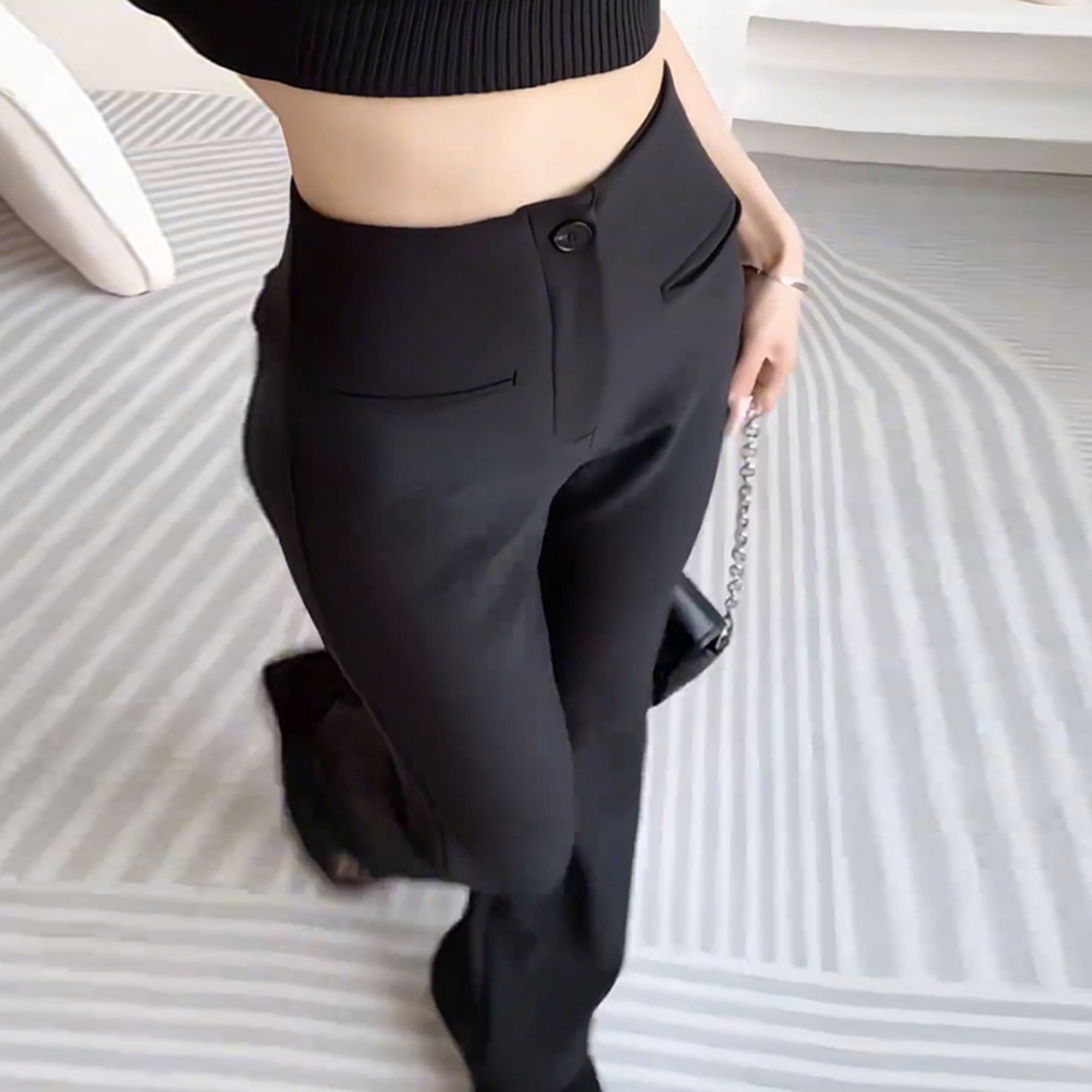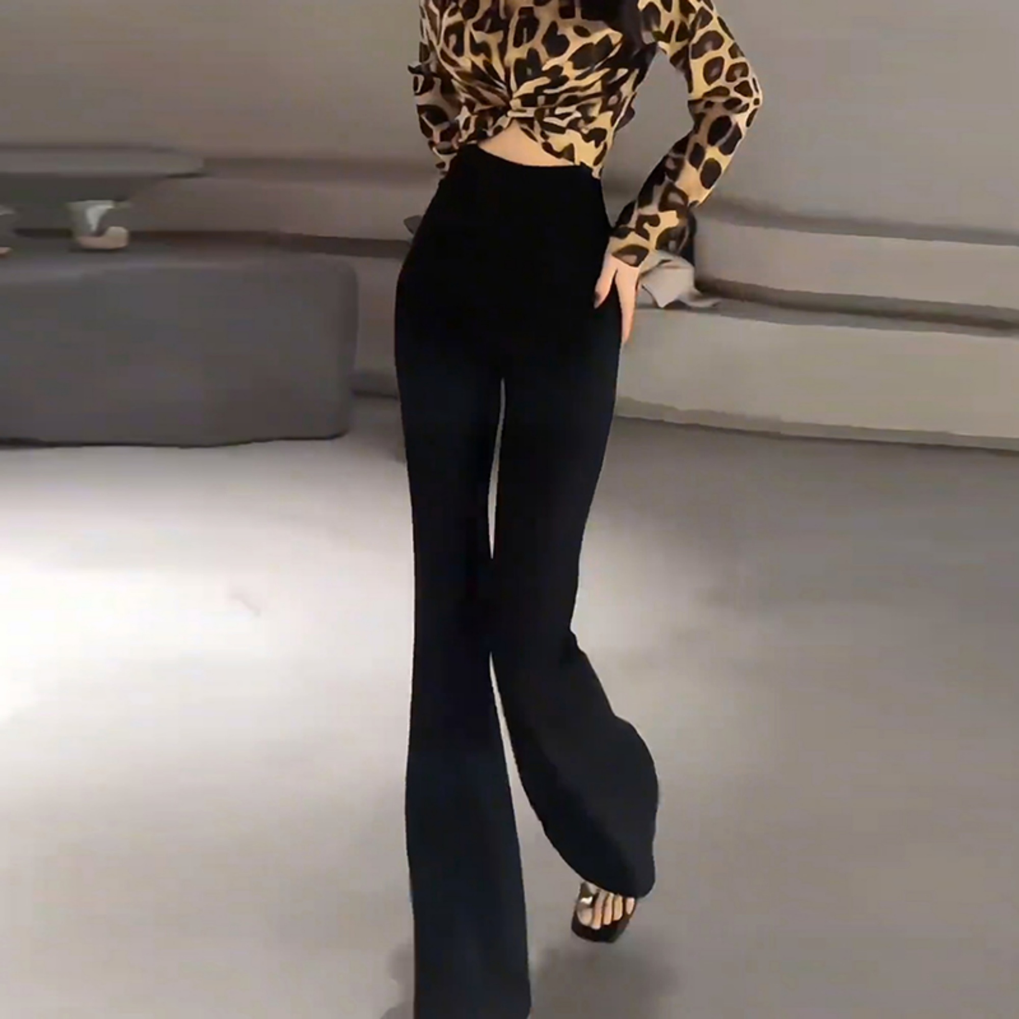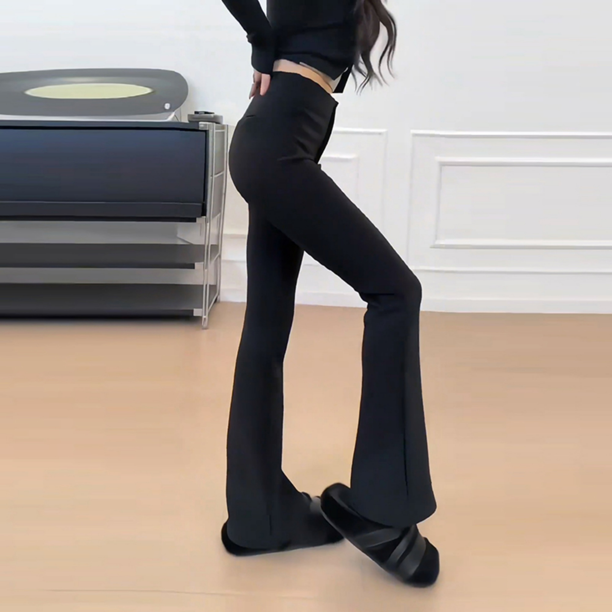 黑色加绒加厚微喇西装裤女秋冬新款高腰显瘦弹力修身马蹄喇叭裤子