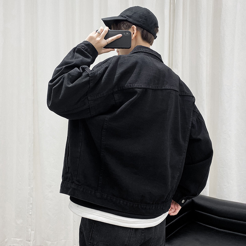 春秋新款纯色牛仔外套男韩版宽松学生潮牌复古百搭bf工装夹克上衣