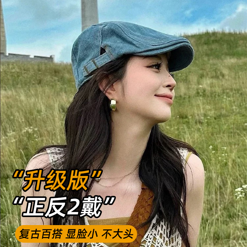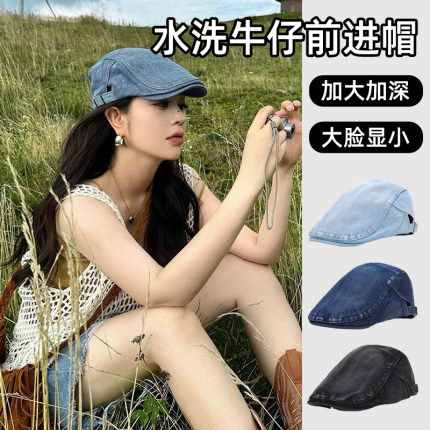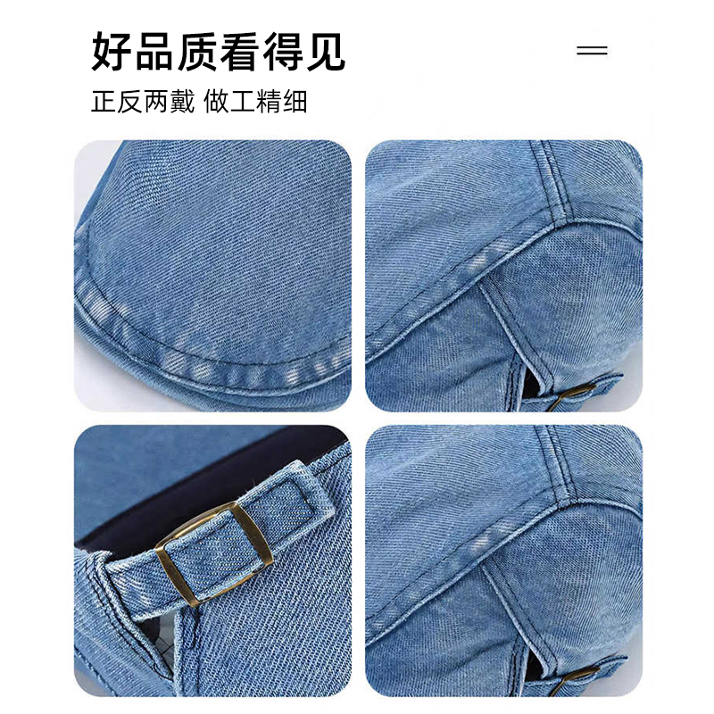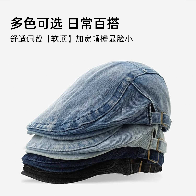 日系做旧牛仔前进帽子女秋季简约鸭舌帽男百搭工体帽英伦贝雷帽潮