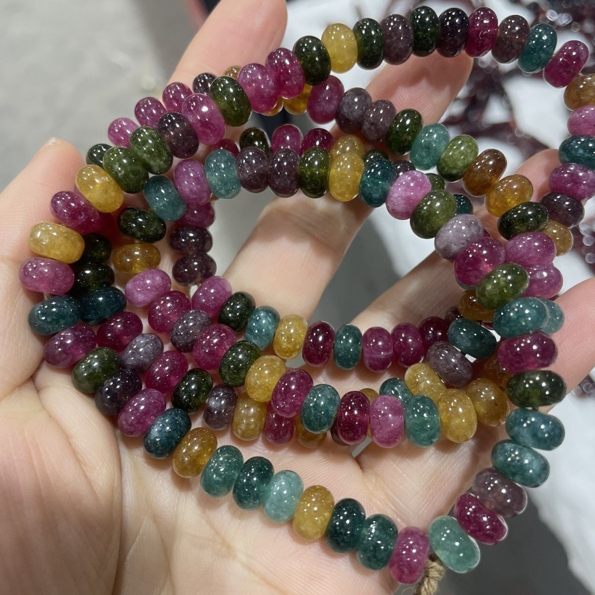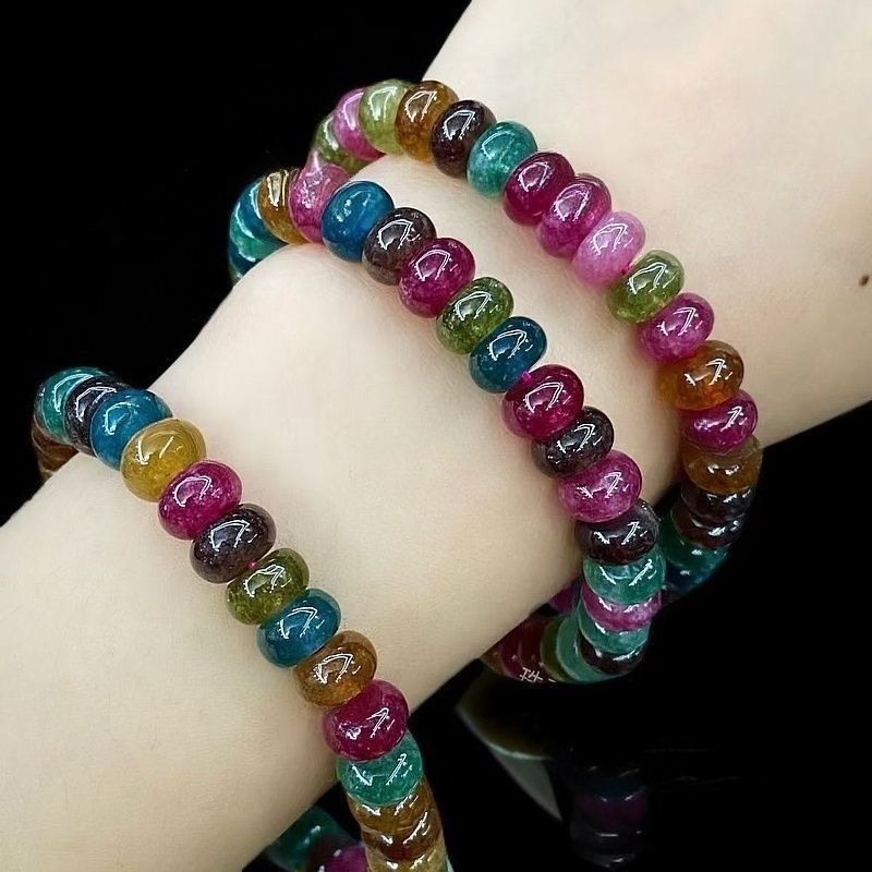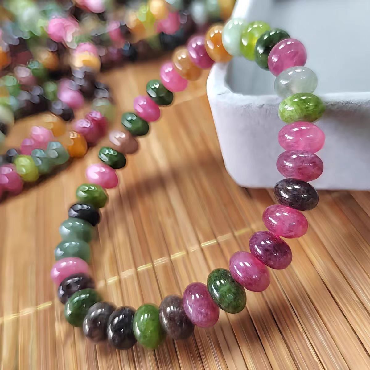 8mm天花板毕业级色标彩虹碧玺算盘珠手链手串