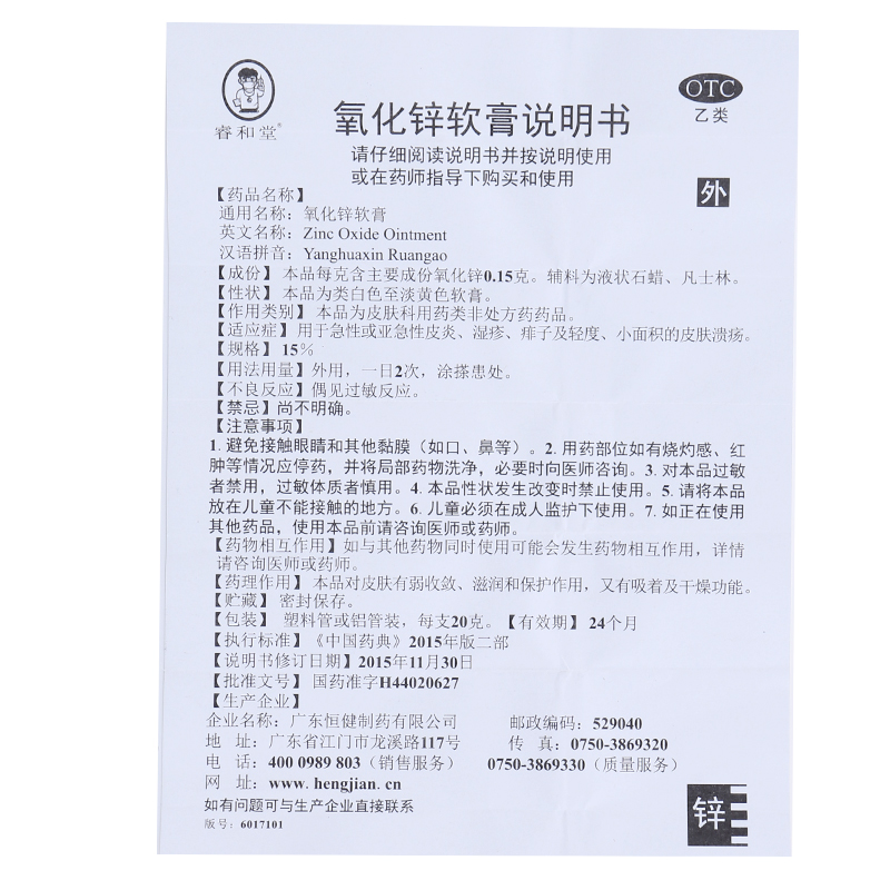 【睿和堂】氧化锌软膏15%*20g*1支/盒