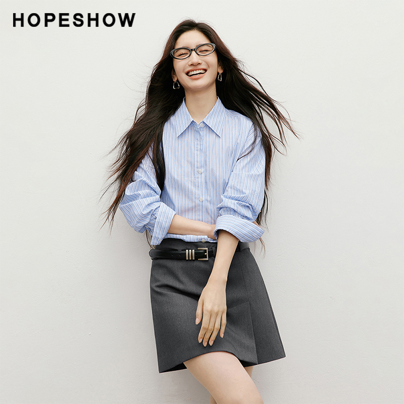 红袖2025秋季新款女装100棉撞色条纹单排扣落肩长袖一手长衬衫