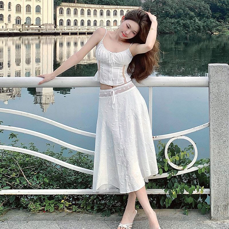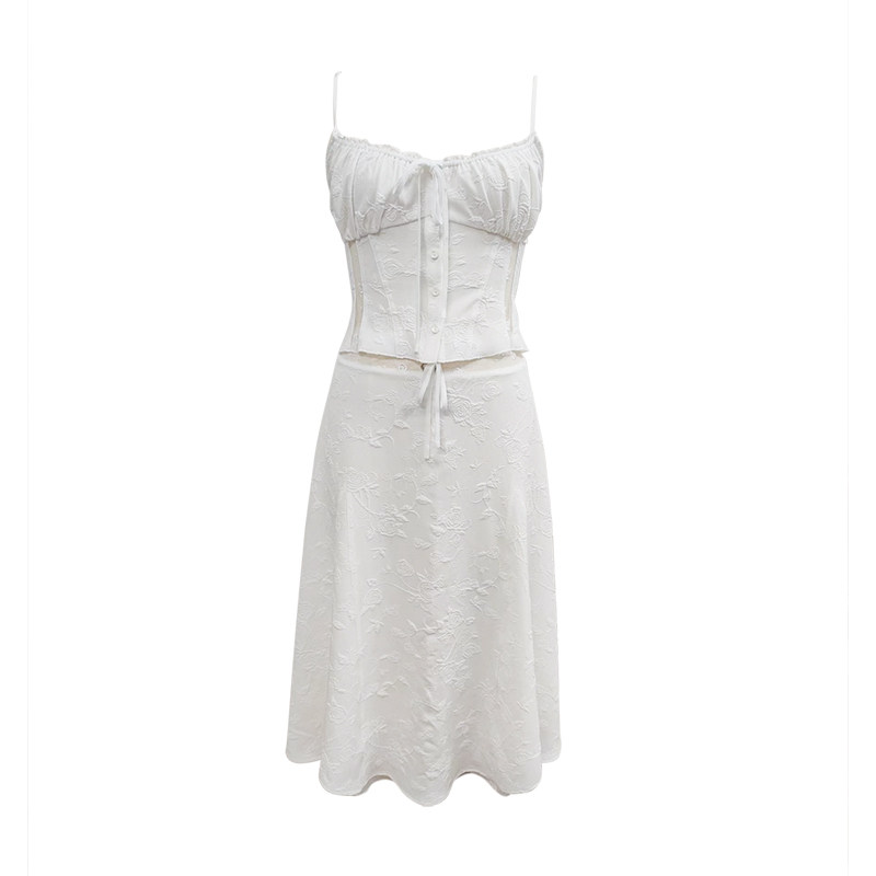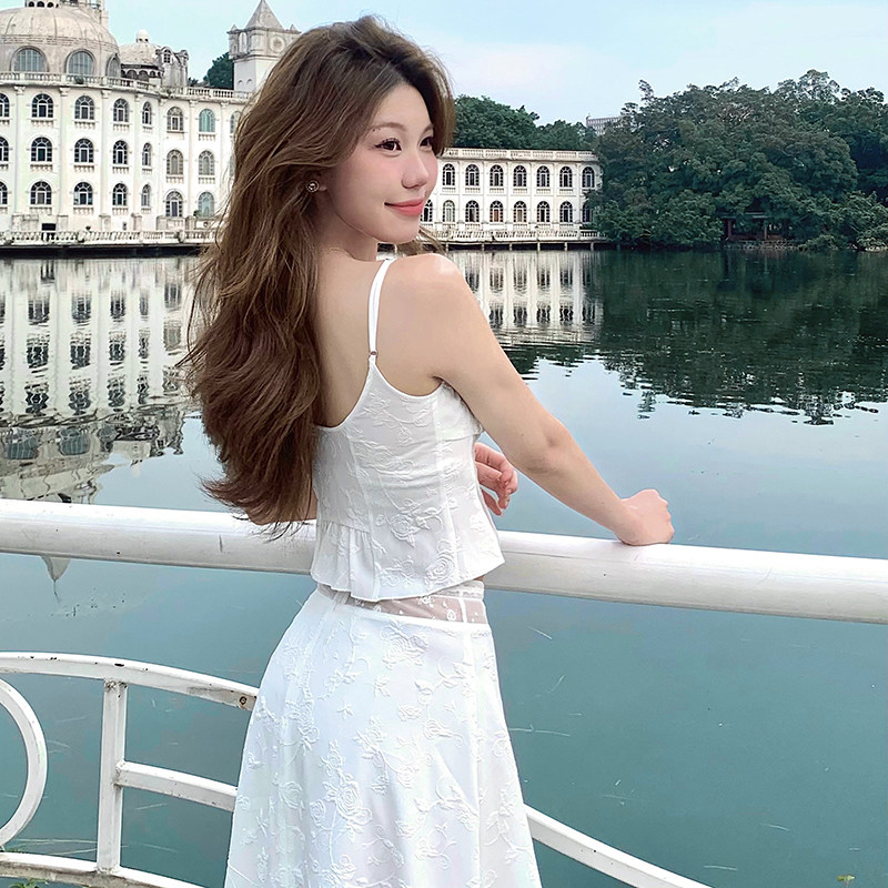 LilyRose「朱莉套装」法式玫瑰刺绣蕾丝设计感吊带背心半裙两件套