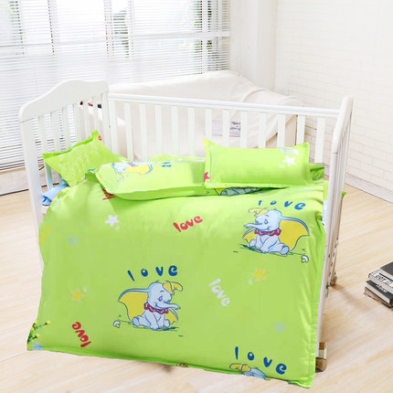 幼儿园被子三件套纯棉儿童棉花被六件套宝宝男孩米奇卡通绿色被套