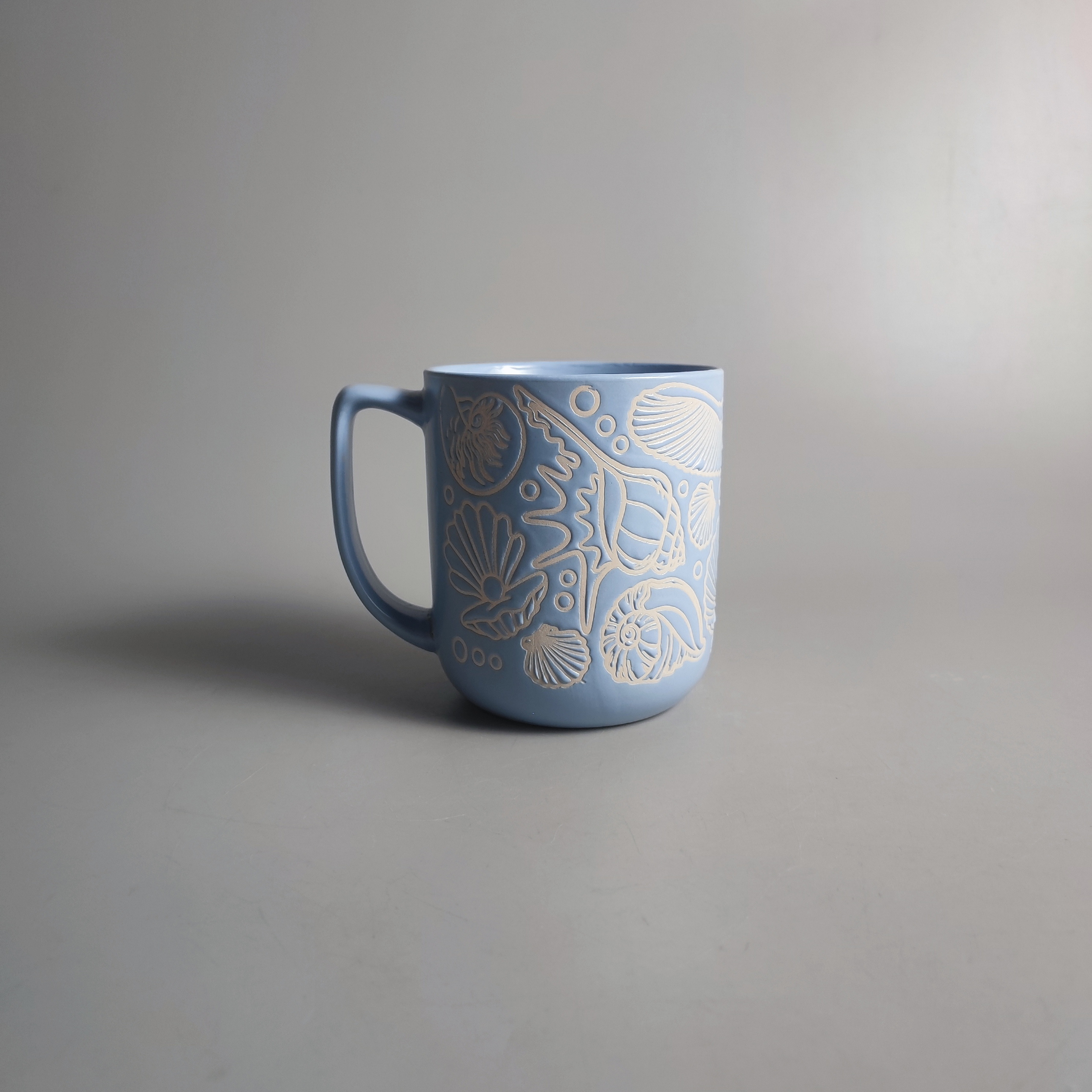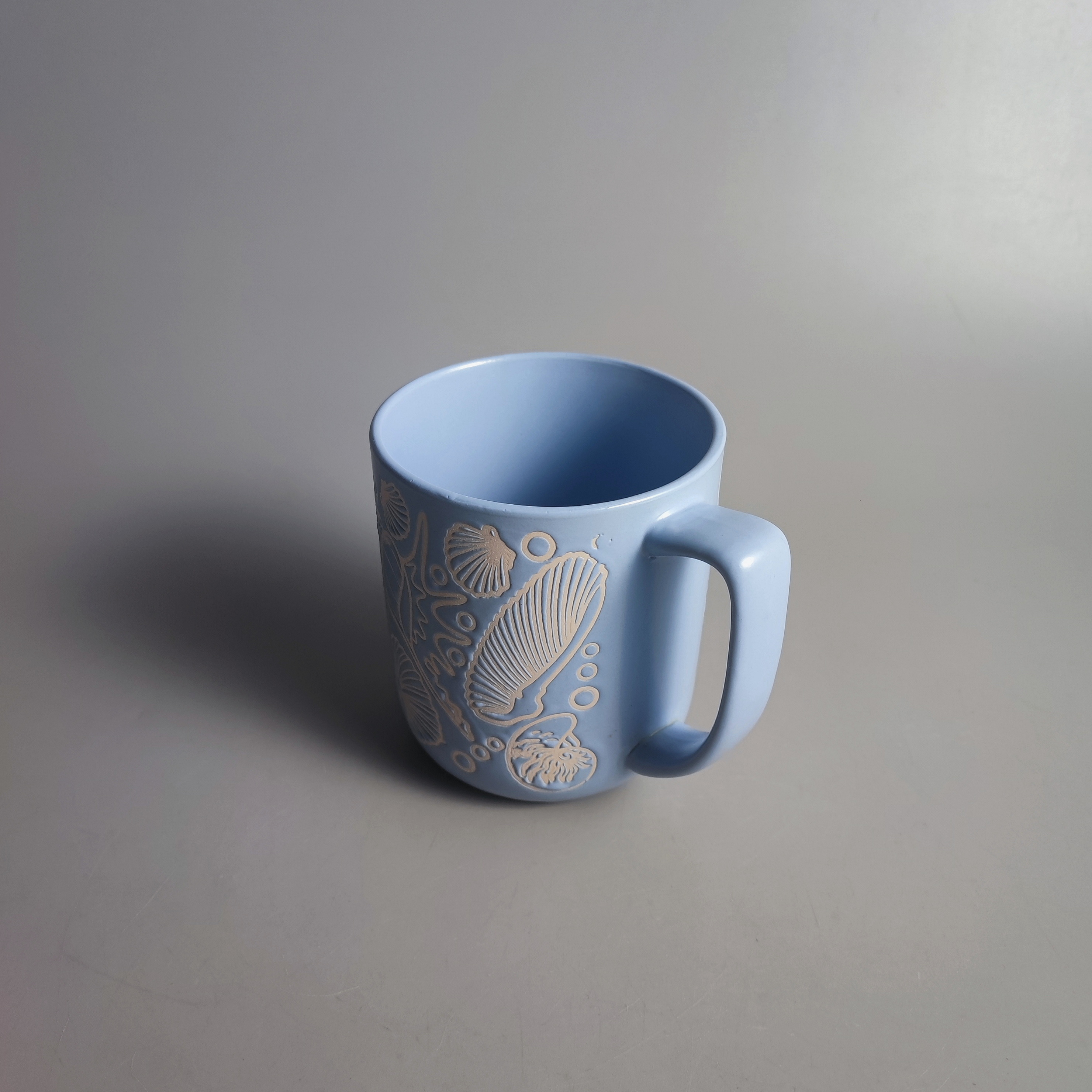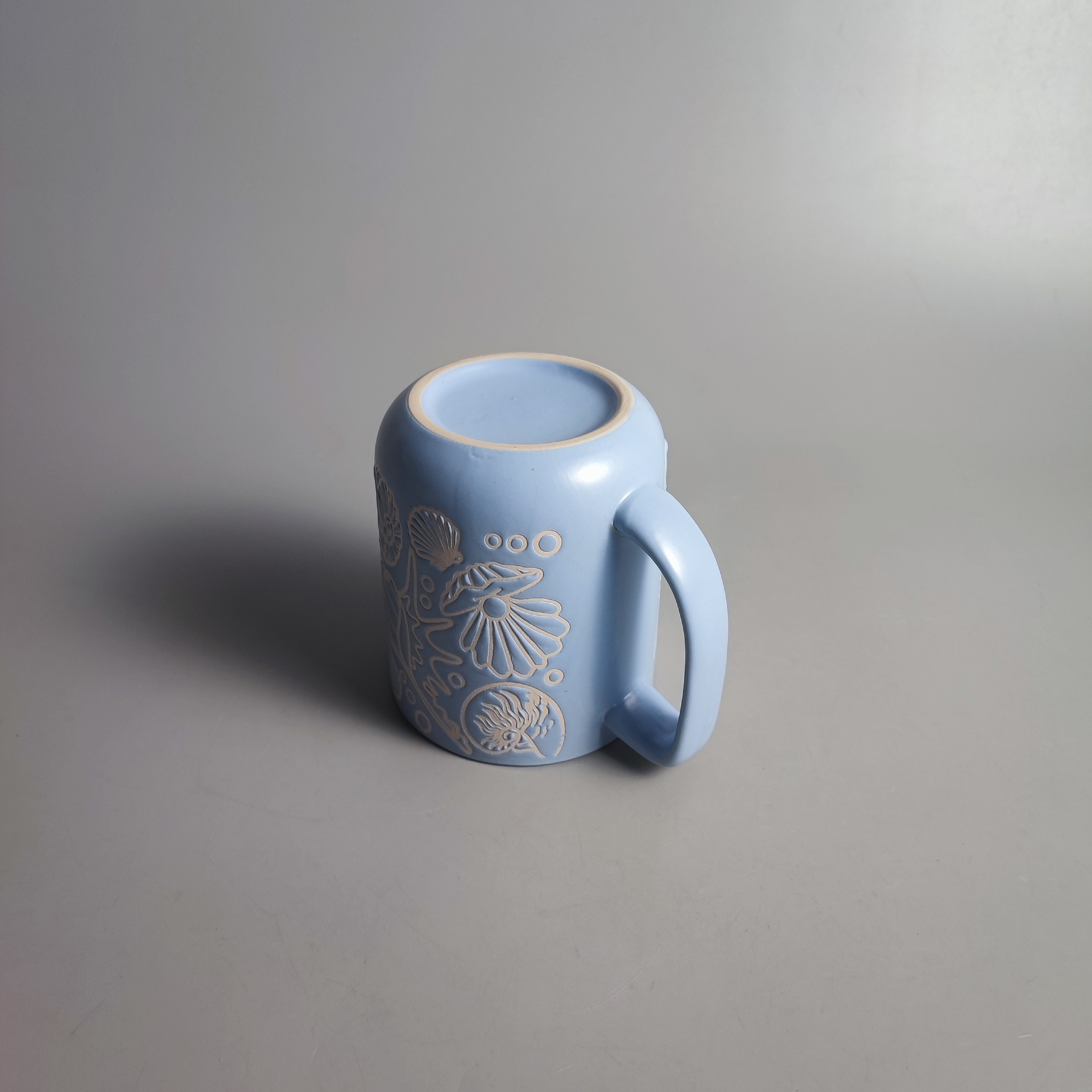 外贸出口尾单内销瑕疵陶瓷餐具北欧复古小清新蓝色贝壳马克杯水杯