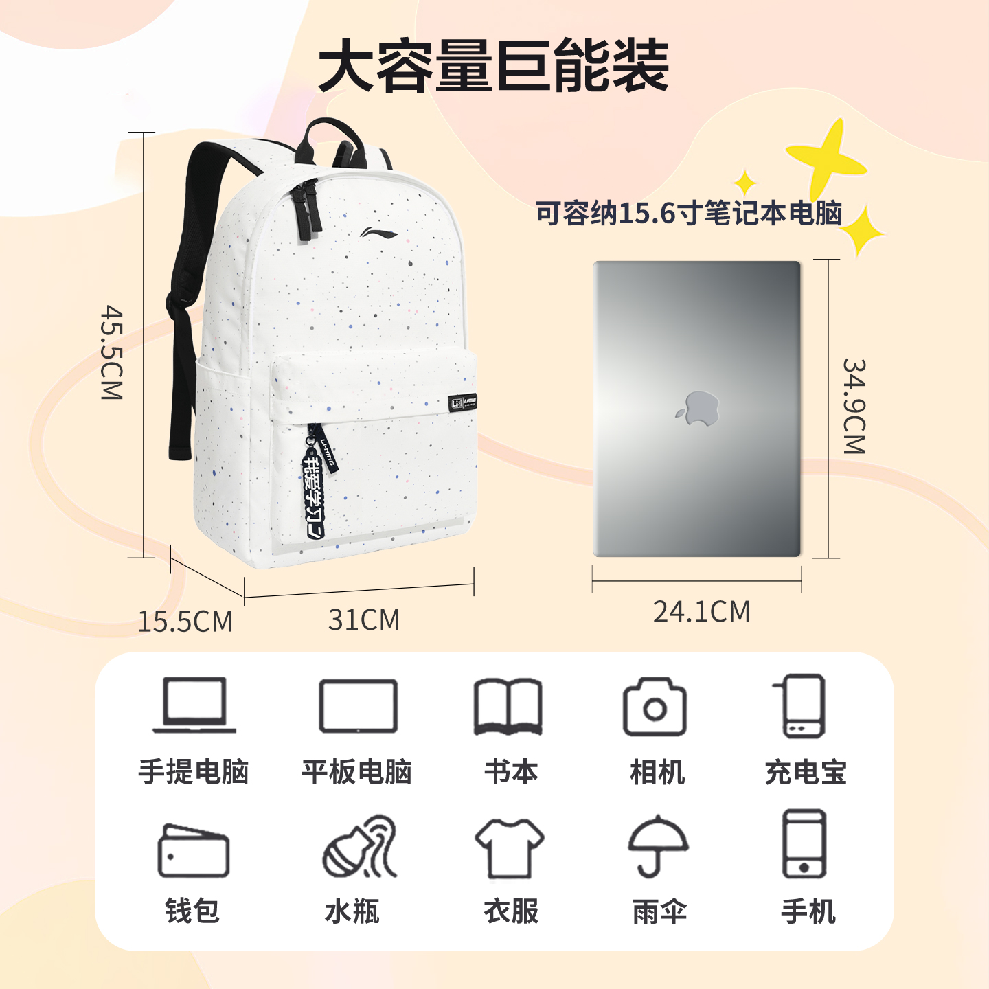 李宁双肩包满天星印花书包