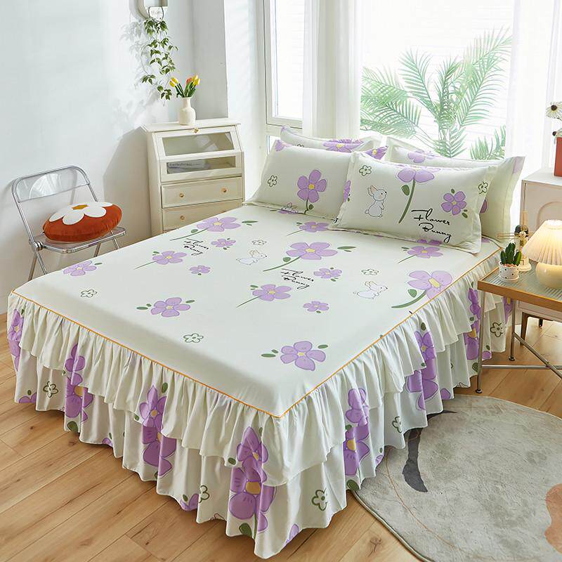 加厚纯棉床裙三件套全棉床罩床单床笠单件1.8m米床裙式防滑床垫套