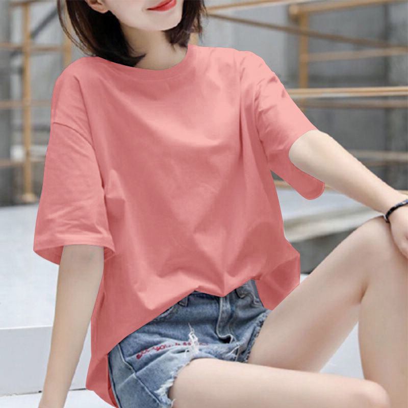 纯棉T恤短袖女纯色大码宽松夏季韩版百搭圆领体恤洋气半袖上衣服